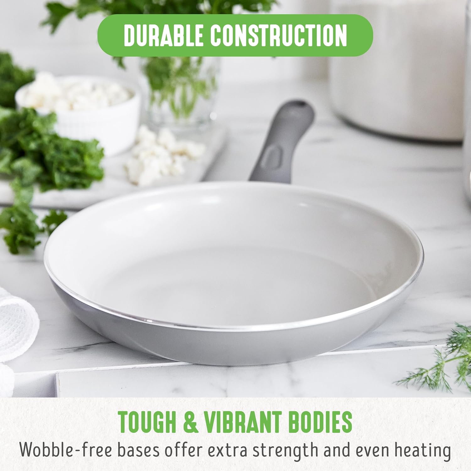 • Eco-Friendly Design: Coating derived from sand creates 60% less CO2 during curing; pan body made from recycled aluminum.