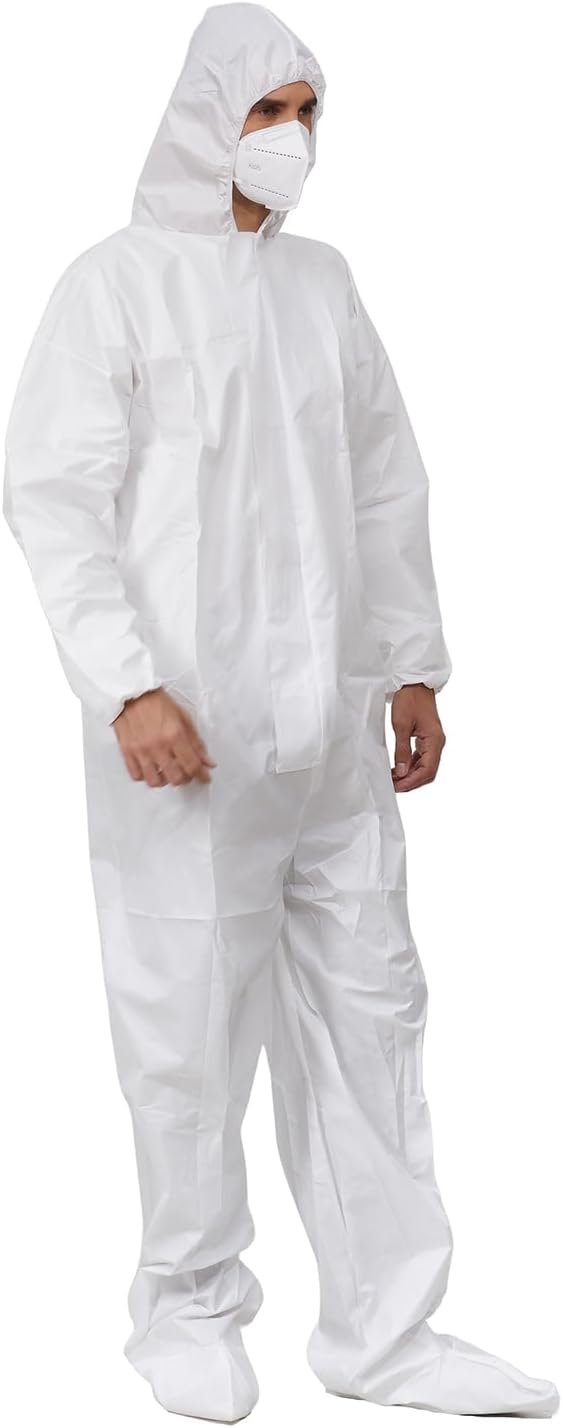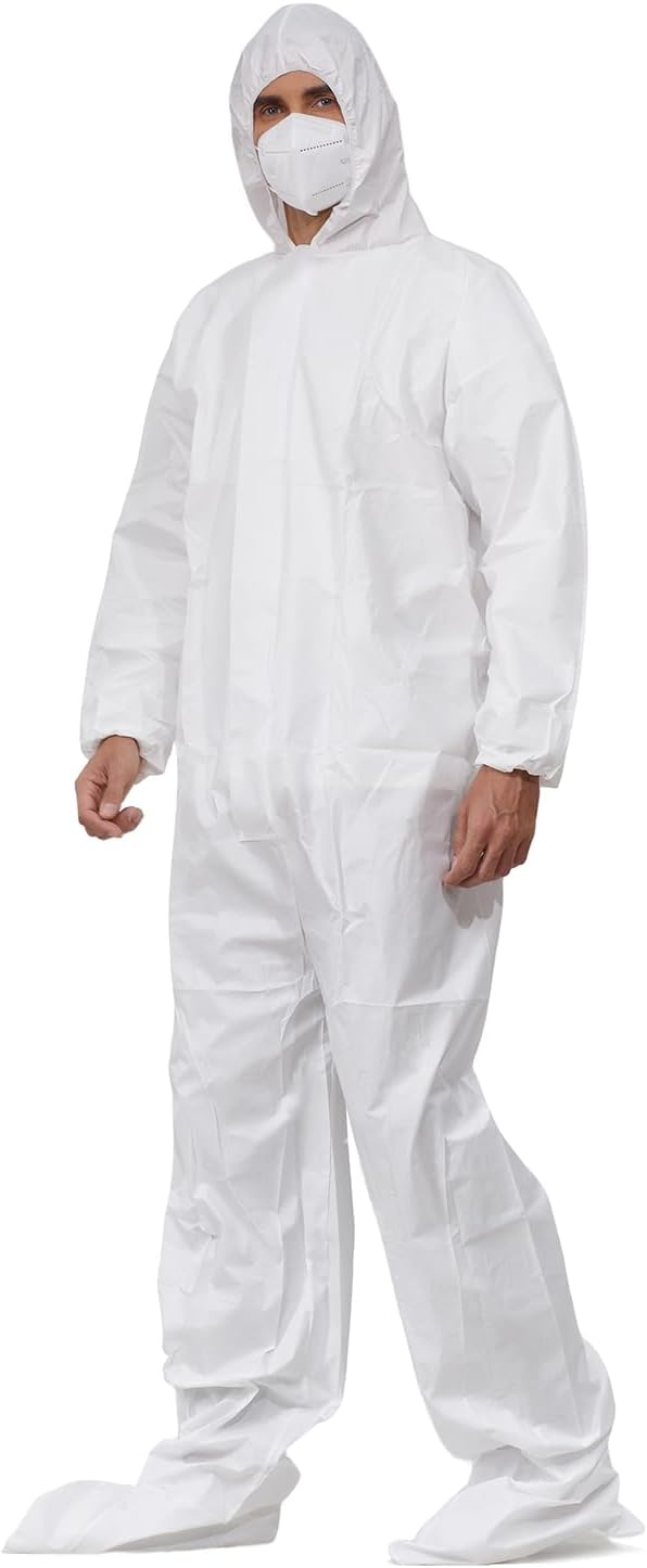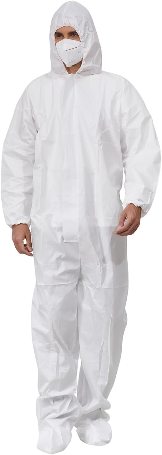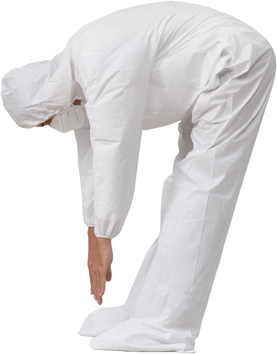 Get superior protection with these premium disposable hazmat coveralls designed for professional painters, contractors, and industrial workers. Constructed with heavy-duty microporous material, these coveralls offer an excellent barrier against paint overspray, dust, dirt, and hazardous particles while maintaining exceptional breathability for all-day comfort. The elastic cuffs, ankles, and waistband provide a secure fit that prevents contaminants from entering, while the zippered front allows for easy on-and-off. Whether you’re spraying paint, handling chemicals, or working in dusty environments, these white protective coveralls keep your clothing and skin clean. Perfect for home improvement projects, automotive work, construction sites, and more. Each pack contains durable coveralls that are lightweight yet tough enough to handle demanding tasks. Machine washable for easy cleaning and reuse.