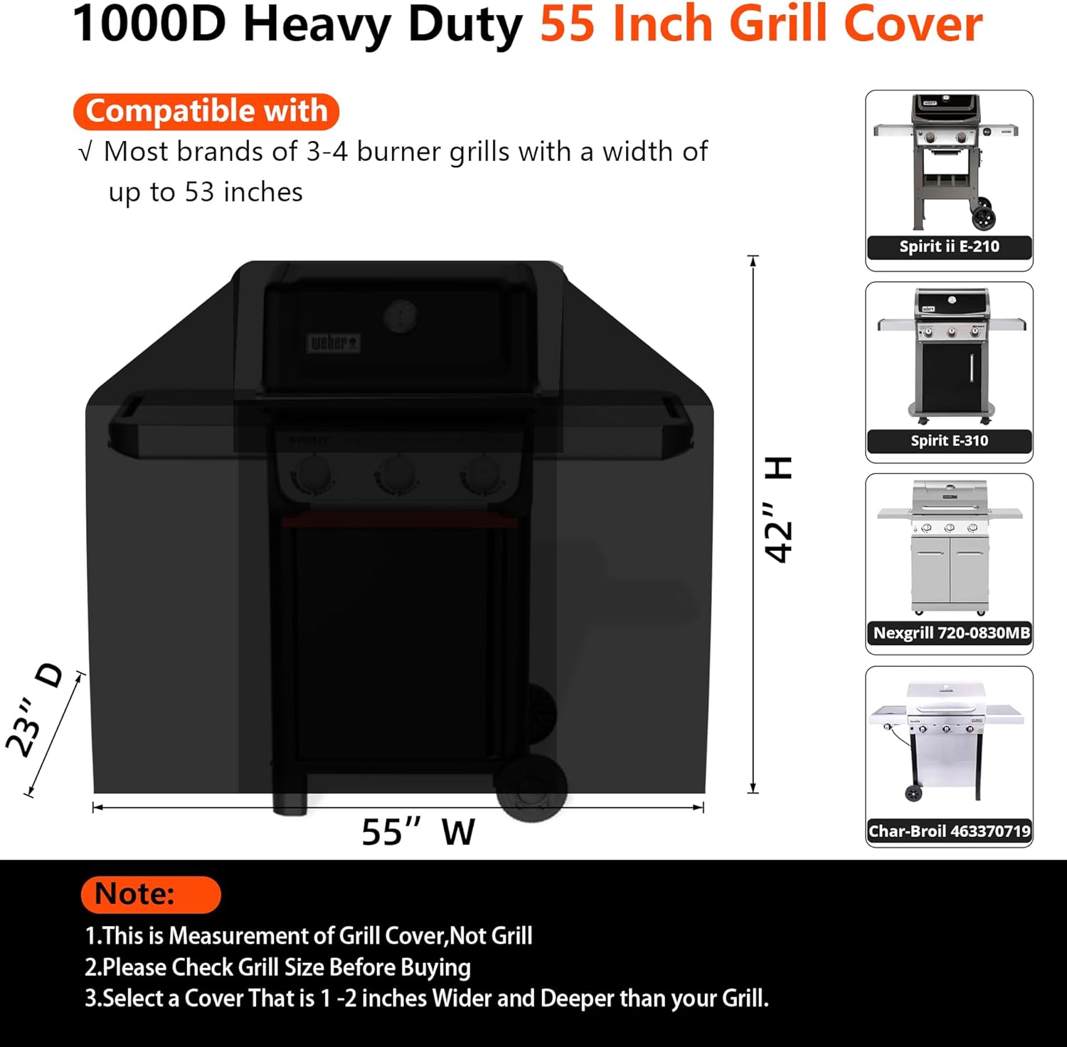 - Easy Handling: Features reinforced fabric handles on the sides, making it effortless to remove and replace the cover after every cookout.