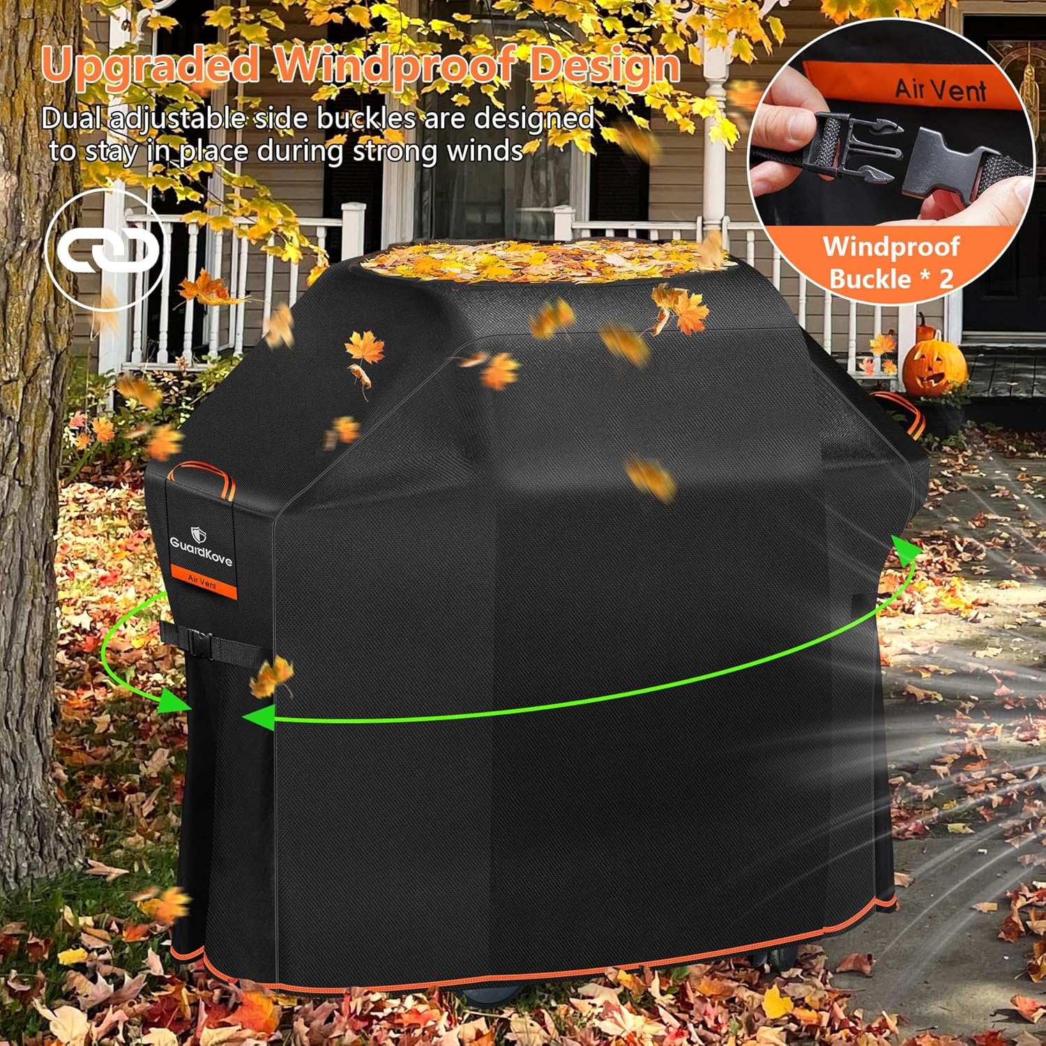 - Wind-Resistant Design: Equipped with dual adjustable buckle straps that click into place, ensuring the cover stays secure even during high winds. No more chasing your cover down the yard!