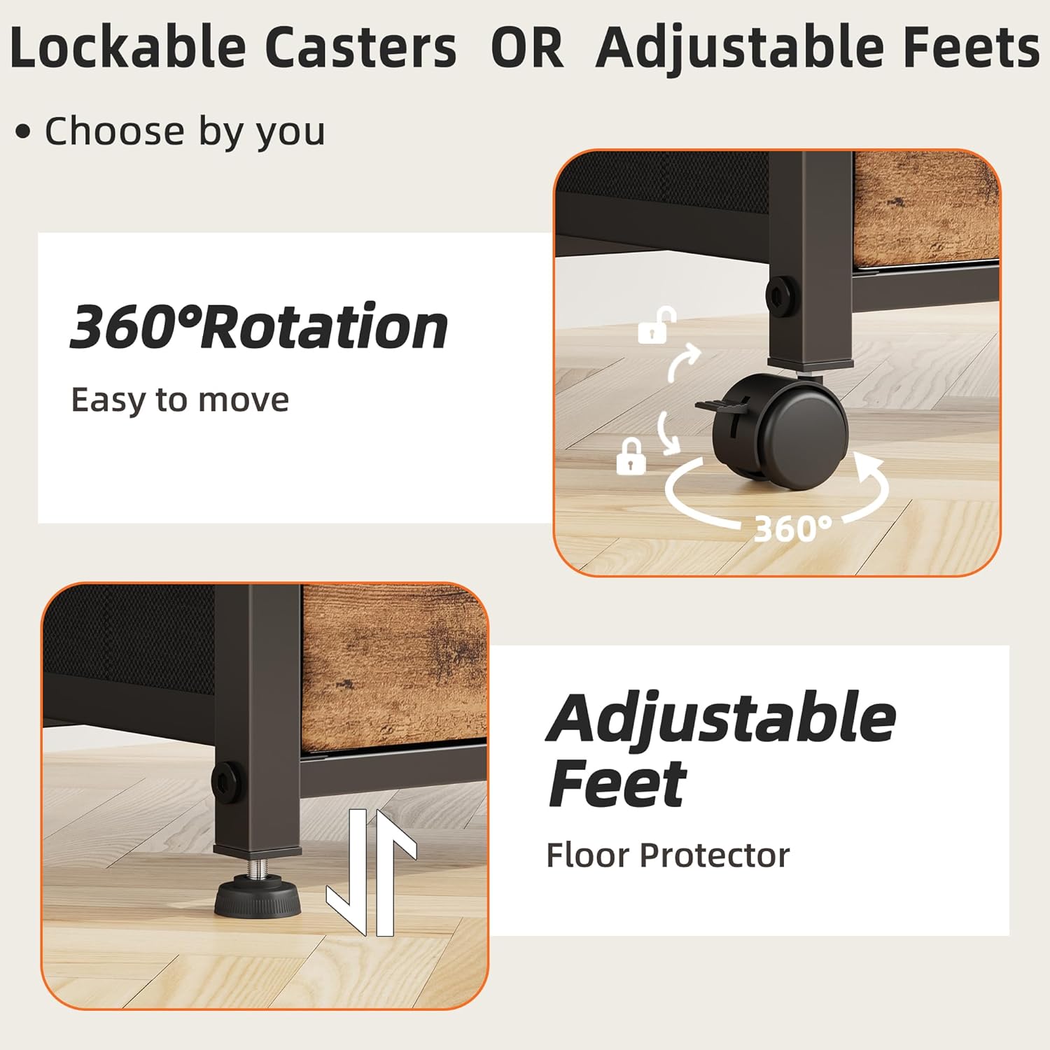 Adapt the cabinet to your workflow needs. It comes equipped with two types of footrests: four 360° swivel casters with locking brakes for smooth mobility around your office, and four adjustable leveling feet. Choose the casters to create a mobile printer cart that slides under your desk, or opt for the leveling feet to convert it into a sturdy, stationary filing cabinet.