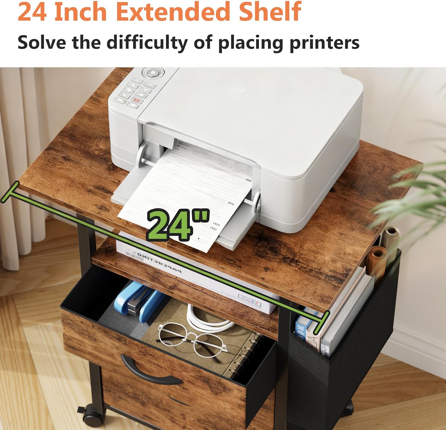 Unlike standard mobile cabinets with limited surface area, this unit features a reinforced 24-inch extended desktop. Constructed from joined high-quality wooden boards, this spacious surface is specifically tailored to accommodate larger office printers and scanners with ease. The robust build ensures superior load-bearing capacity, making it a stable and reliable foundation for your essential office equipment.