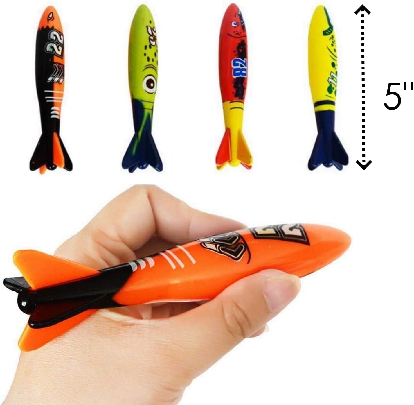 - 8-PACK HYDRO TORPEDO SET: Includes 8 vibrantly colored diving torpedoes designed for high-velocity underwater gliding action.