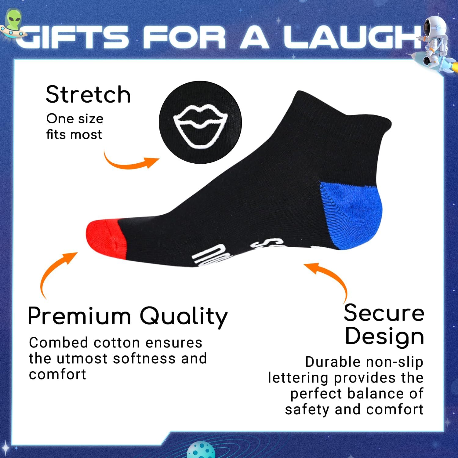 PREMIUM COMFORT & QUALITY: Don’t sacrifice comfort for comedy. Crafted from a high-quality soft cotton blend (80% Cotton, 17% Polyester, 3% Spandex), these socks are breathable, sweat-wicking, and durable. The reinforced heel and toe ensure they hold up to daily wear, while the stretchy fabric provides a snug fit for most feet without slipping or binding.