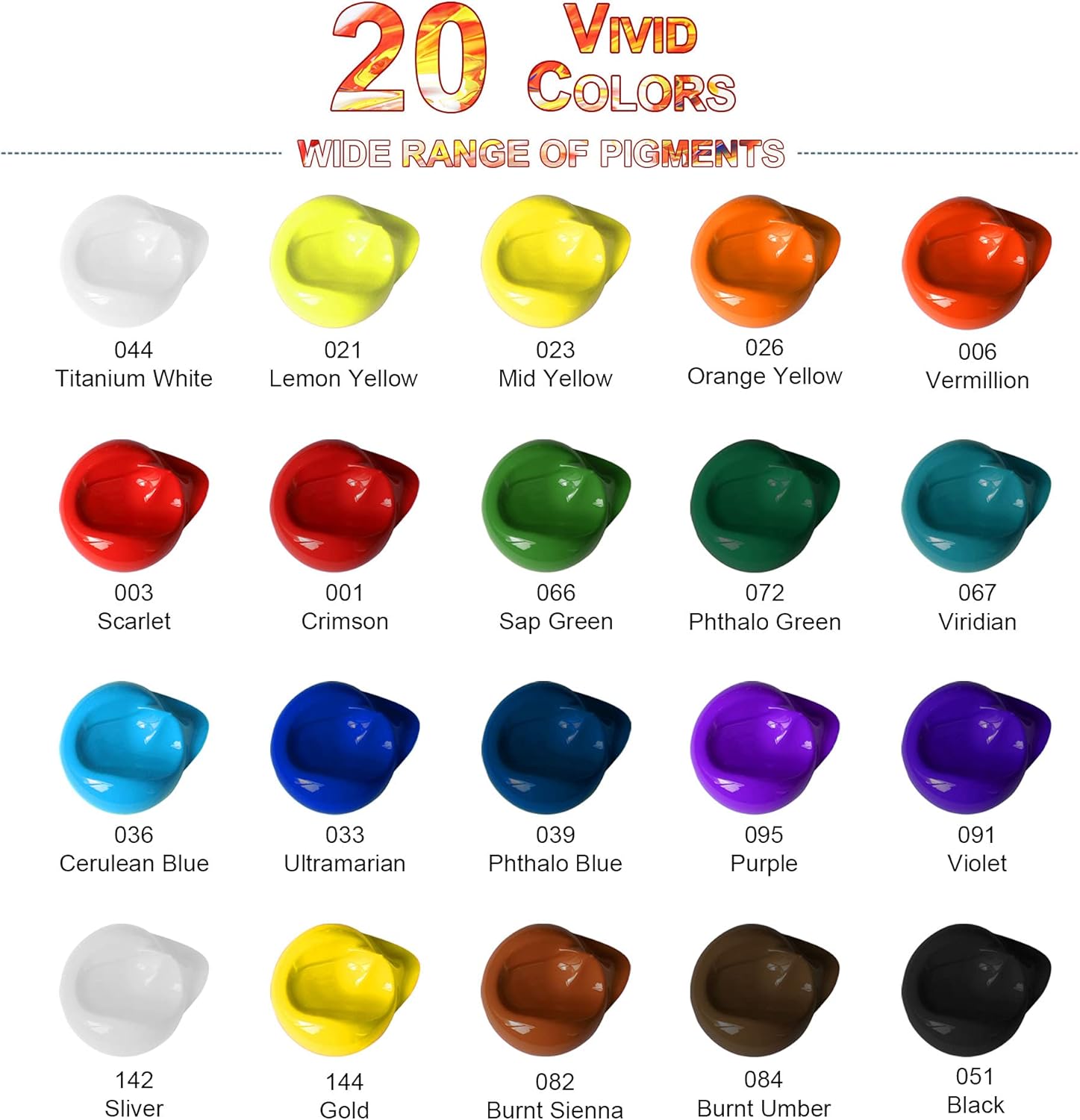 - Highly Pigmented: Our concentrated formula ensures high tinting strength. A little goes a long way, delivering vibrant, lightfast colors that won’t fade over time.