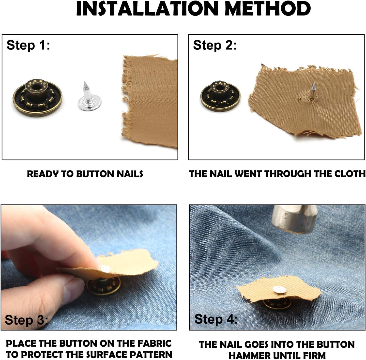 • Premium Quality: 20 sets of 18mm bronze-style metal jean buttons (caps, studs, and backs included).