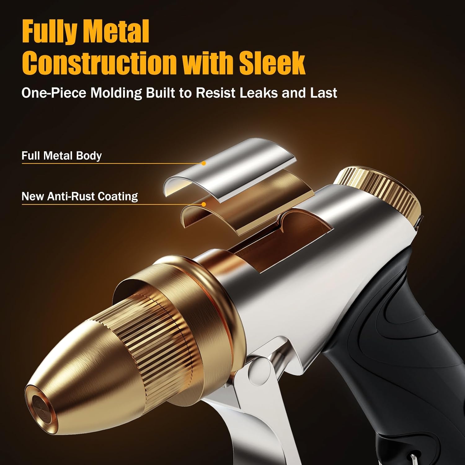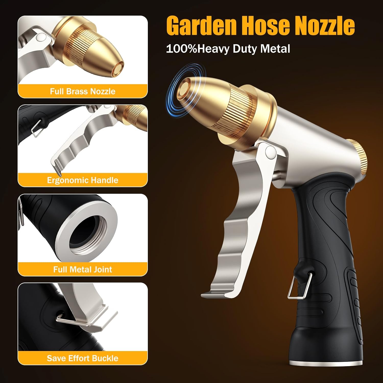 - Unrivaled Durability: Crafted from 100% metal (Zinc Alloy) with an ergonomic soft rubber grip, this nozzle is built to last and comfortable to hold, even during extended use or in wet conditions.