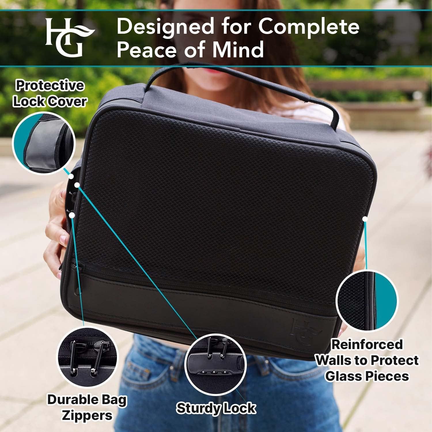 Herb Guard XL Smell Proof Case & Airtight Storage Bag with Combo Lock – Holds Up to 5 oz, Includes UV Jar, Carbon Lining, Rolling Tray & Travel Pouch