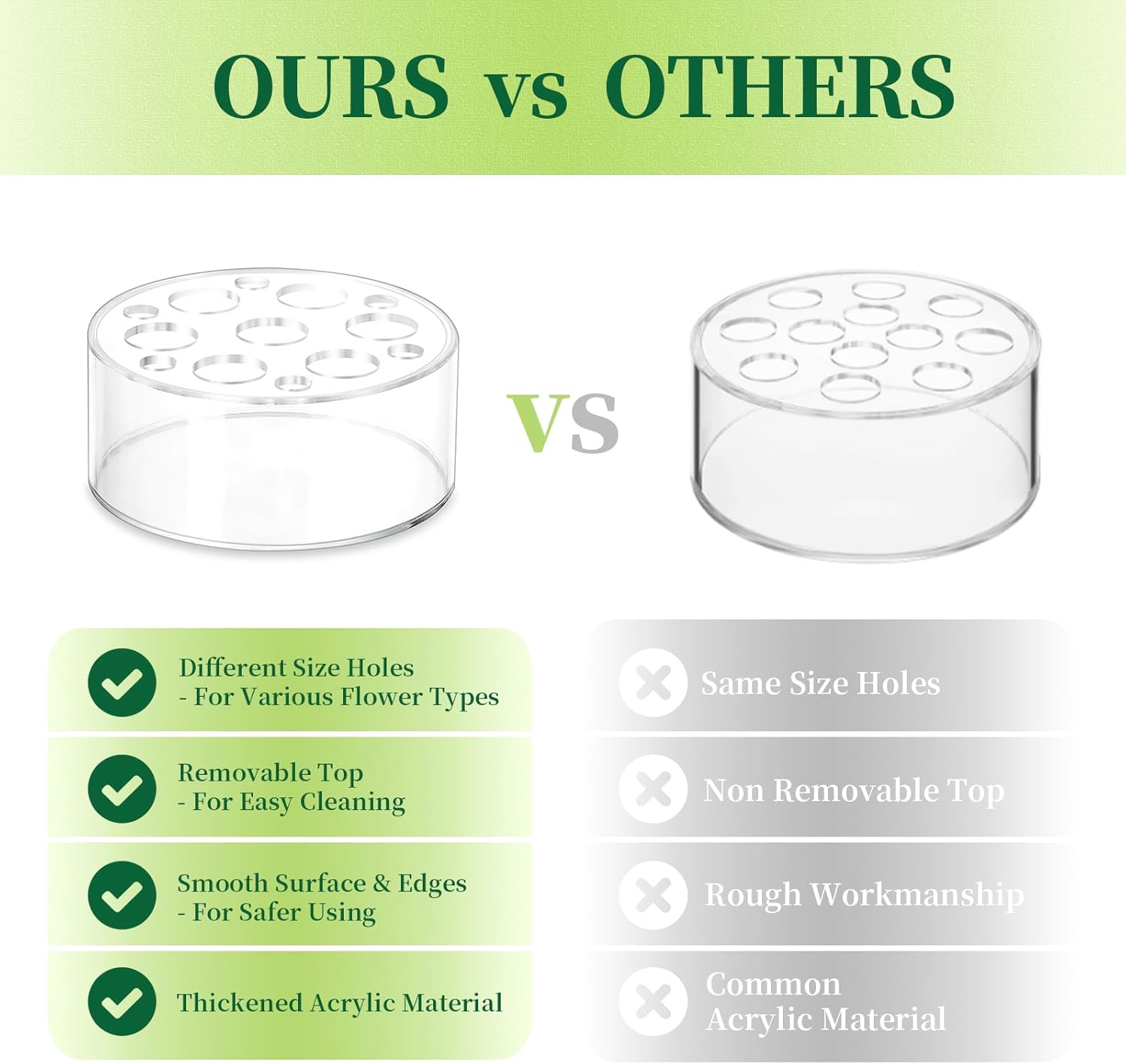 - EFFORTLESS ARRANGING: Each lid features 13 holes (7 large, 6 small) to securely hold stems of varying thicknesses, creating professional-looking floral displays with ease.