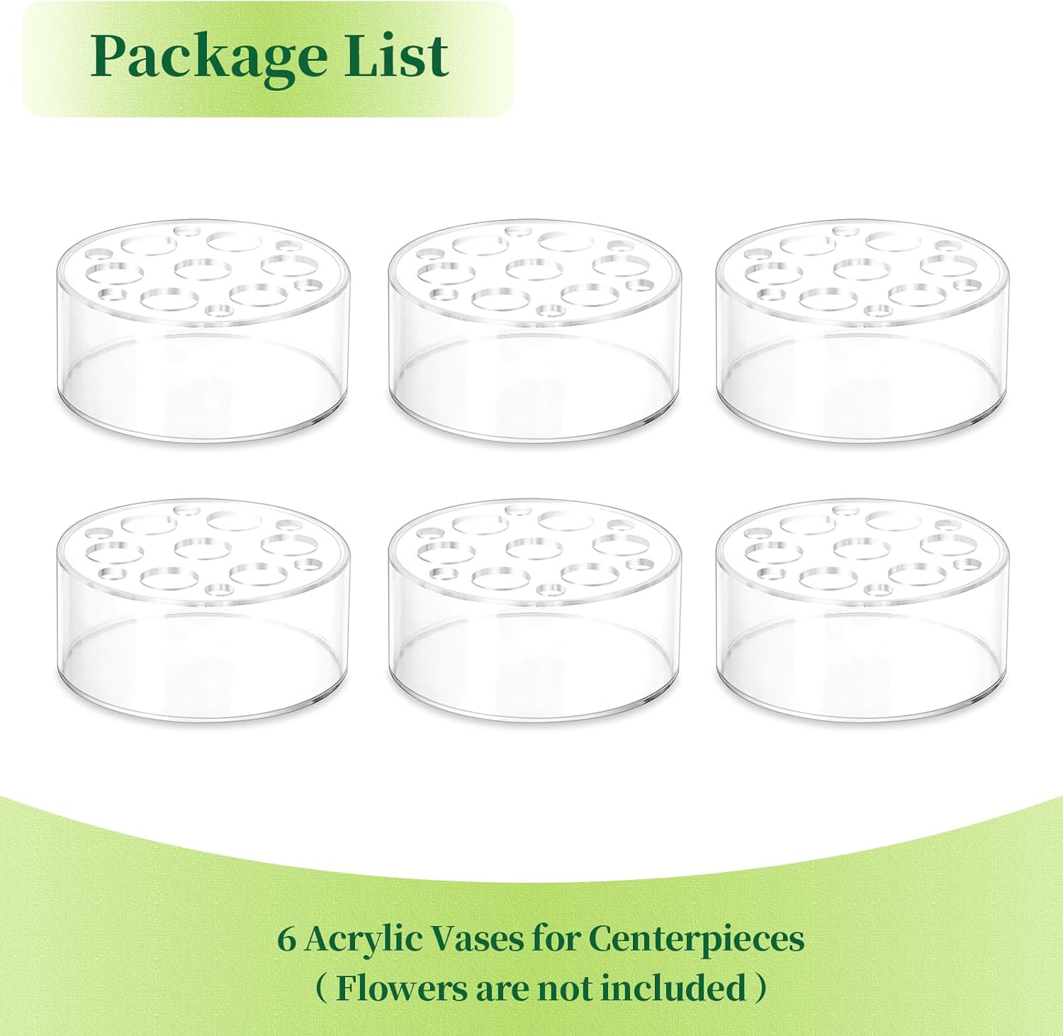- COMPLETE BULK SET: Includes 6 round acrylic flower vases (2.56″ H x 5.9″ D), perfect for large event centerpieces, wedding receptions, or home dining tables.