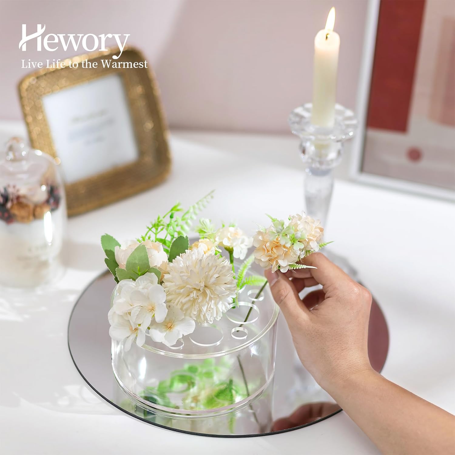 Hewory Acrylic Flower Vases – 6 Pack Round Centerpiece Boxes with 13-Hole Lids, 2.56”H Clear Floral Arrangers for Weddings & Home Décor