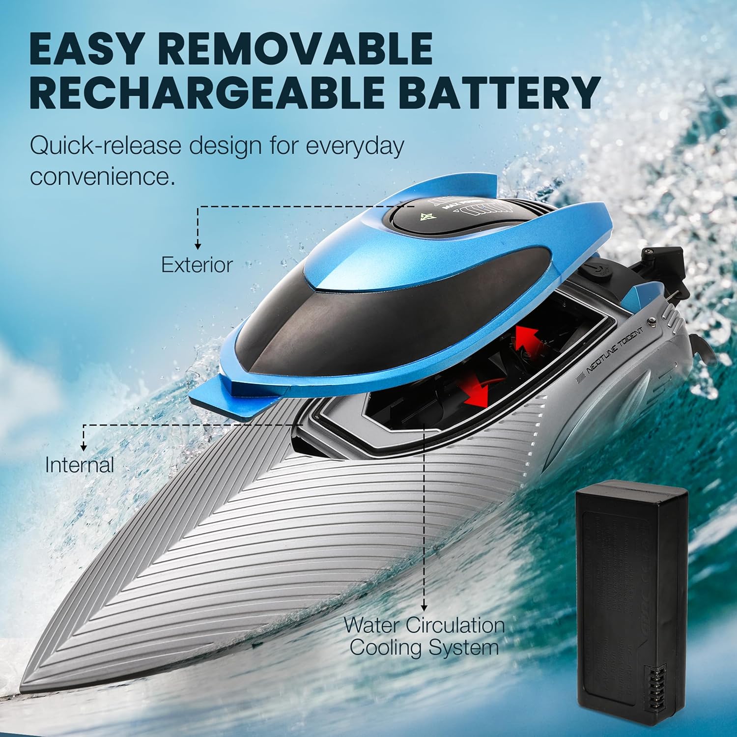 - SMART SAFETY FEATURES: Water-cooled engine and water-activated propeller safety system ensure the boat only runs when submerged.
