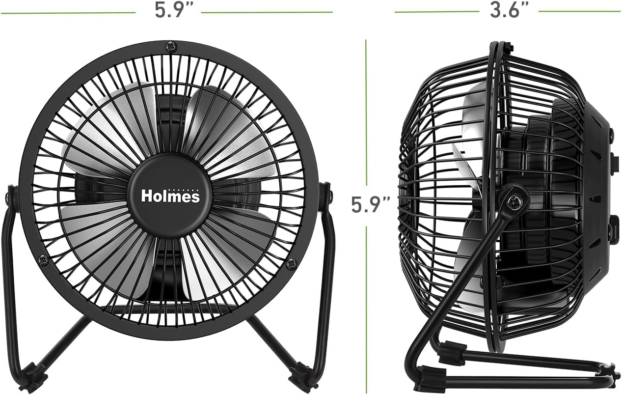 Holmes 4-Inch High-Velocity Personal Desk Fan – Durable Metal Construction, 360° Adjustable Tilt, Compact for Office, Dorm & Nightstand