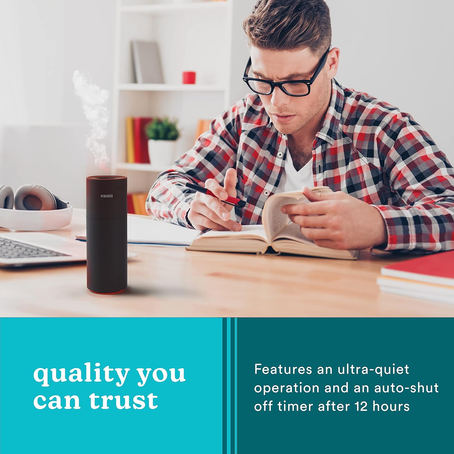 Experience relief from dry air with the HoMedics TotalComfort Portable Humidifier. This compact, cool mist humidifier features a top-fill design, Clean Tank Technology, and whisper-quiet operation, making it perfect for travel, bedrooms, or office desks. Includes 2 mist settings, a soothing color-changing light, and up to 10 hours of runtime.