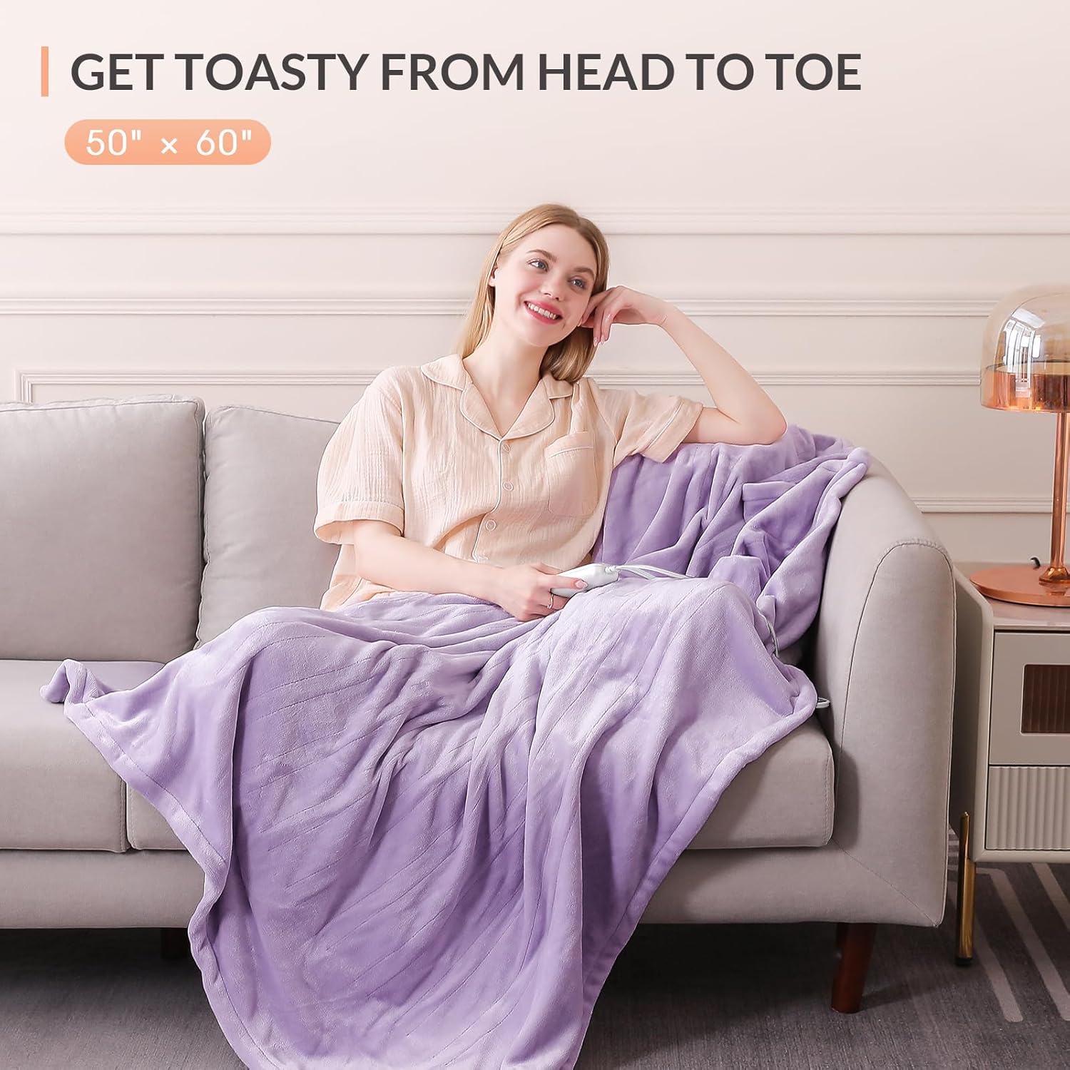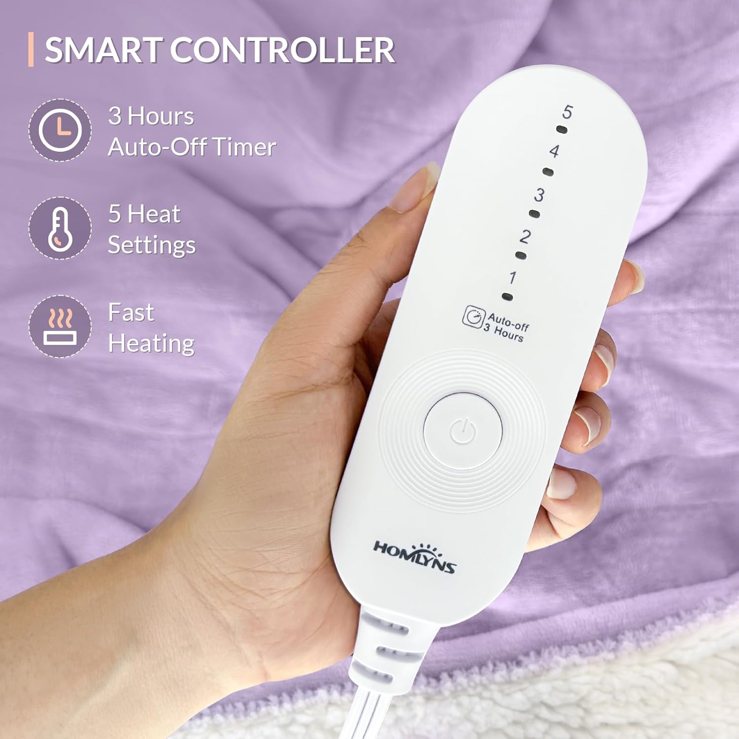 HOMLYNS LuxeHeat Heated Blanket – Ultra-Soft Flannel & Sherpa Electric Throw with 5 Heat Settings, 3-Hour Auto-Off & 8.5ft Cord, 50×60, Purple