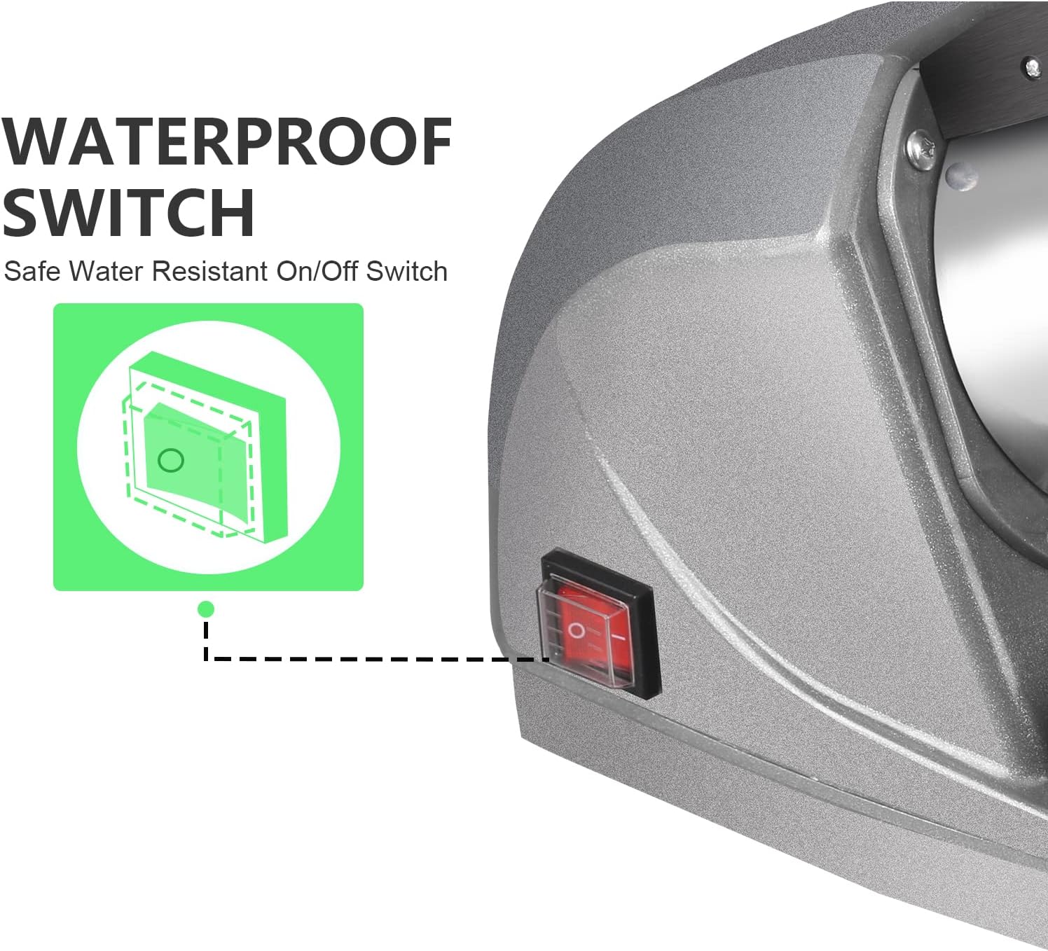 Engineered for Safety: We prioritize your safety. The advanced micro-control protection switch automatically powers off the motor when the hopper cover is opened. Additionally, the waterproof on/off switch prevents water ingress, protecting the motor and ensuring safe operation in wet environments.