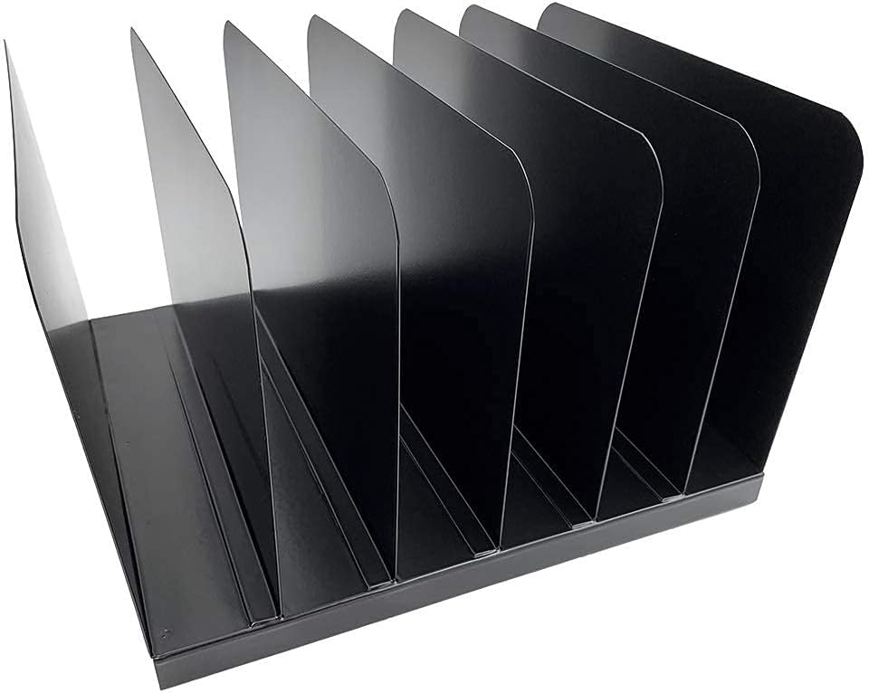 Elevate your workspace efficiency with the Huron Desktop File Binder Organizer. Expertly crafted from heavy-duty, commercial-grade steel, this durable vertical sorter offers a sleek and contemporary solution to manage your most important documents. Designed to withstand daily wear and tear, it features six spacious slots, each capable of holding up to 2 inches of letter-sized folders, notebooks, binders, or mail. Whether utilized as a standalone desktop accessory or mounted to a wall to maximize surface area, this organizer ensures your paperwork remains neatly sorted and easily accessible. Its versatile design allows you to mix and match with other coordinating Huron accessories (sold separately) to create a customized, clutter-free storage system tailored to your specific needs.