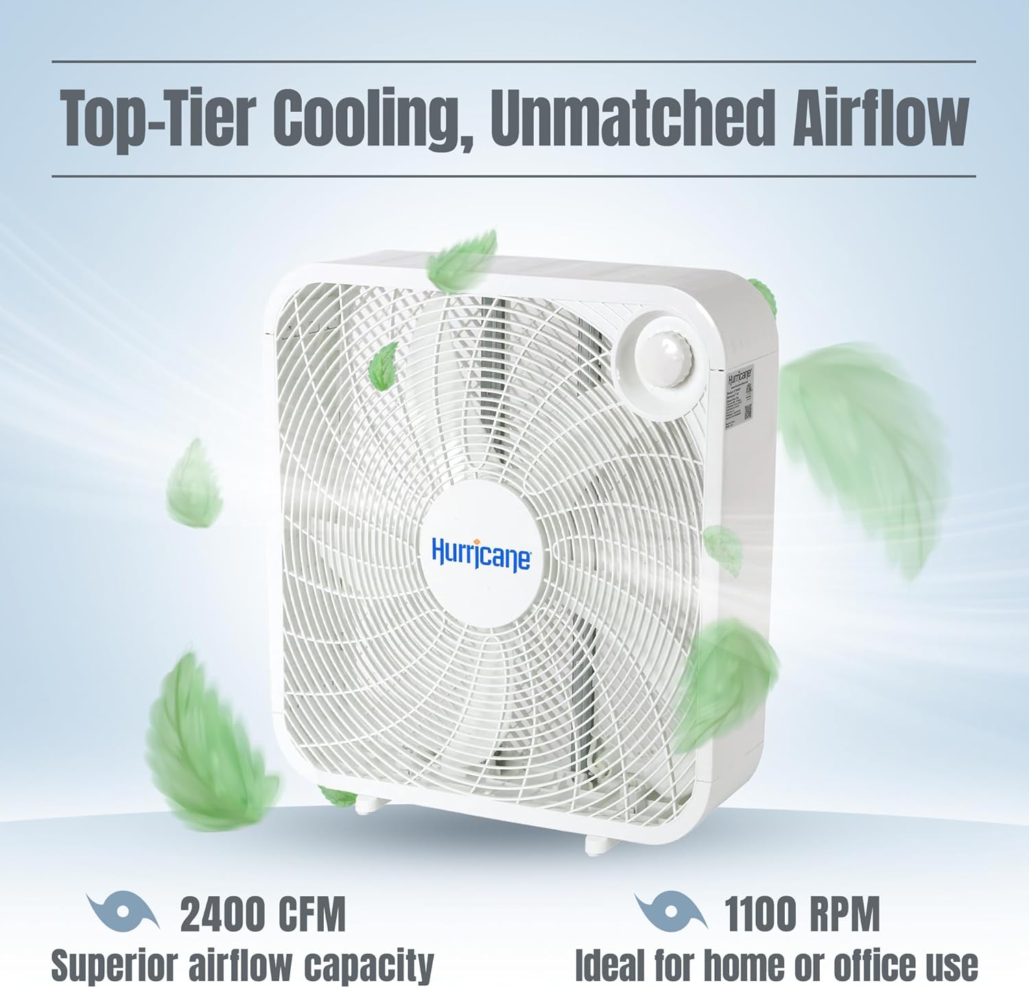 Beat the heat and improve air circulation in any space with the Hurricane Classic 20-Inch Floor Box Fan. Engineered for performance and durability, this fan is a staple for homes, workshops, and gyms alike. Its robust motor delivers an impressive 2400 CFM of airflow, ensuring that cool breezes reach every corner of the room, while the 1100 RPM blade speed guarantees powerful yet consistent ventilation.