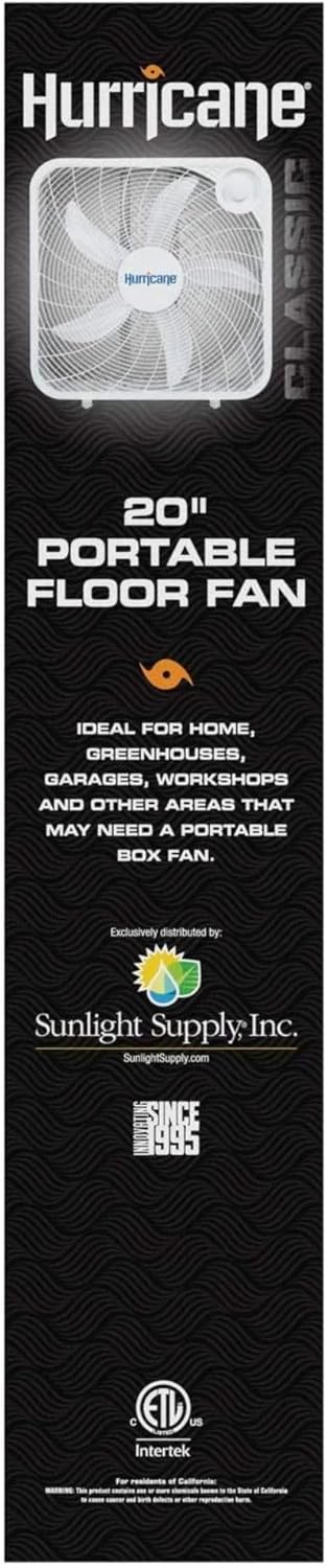 Experience powerful, high-velocity cooling with the Hurricane Classic 20-Inch Floor Fan. Engineered to deliver a staggering 2400 CFM of airflow at 1100 RPM, this corded electric unit is the ultimate solution for ventilating large spaces like garages, workshops, gyms, and basements. Unlike standard household fans, the Hurricane Classic combines robust motor performance with a space-saving, portable design that fits seamlessly into tight corners. Customize your comfort with three distinct speed settings—ranging from a gentle indoor breeze to a strong, fume-clearing draft—all while operating quietly to maintain your environment’s peace. The fan is constructed with high-quality, impact-resistant polymer blades and features a sturdy motor casing designed for long-term durability. Its lightweight, freestanding frame includes adjustable feet for stability on any surface and a slim profile for easy storage when not in use.