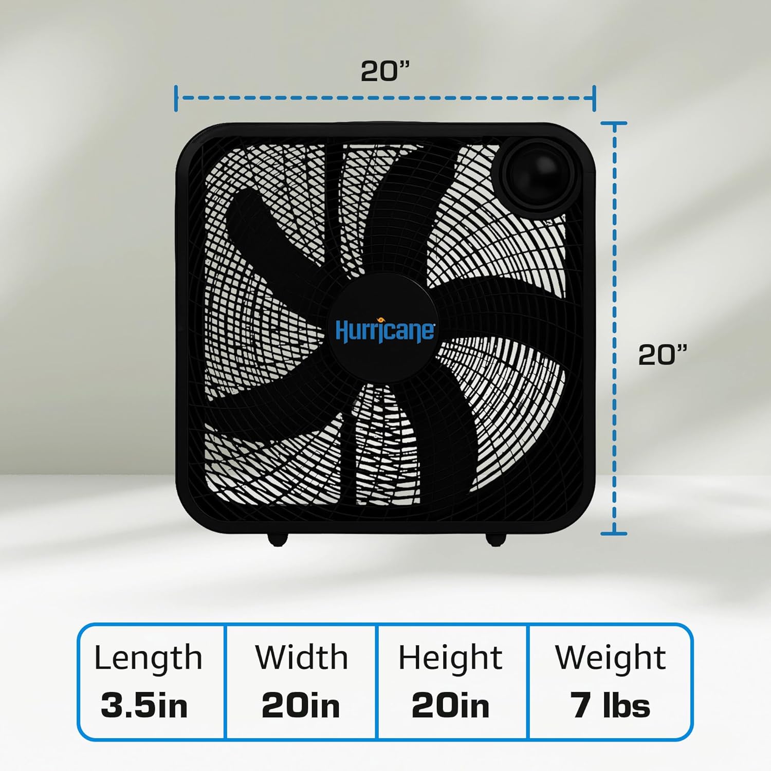 Hurricane Classic 20 Inch Floor Fan – 3-Speed High Velocity Box Fan for Home, Garage, and Workshop, 2400 CFM Quiet Air Circulator with Portable Design (Black)
