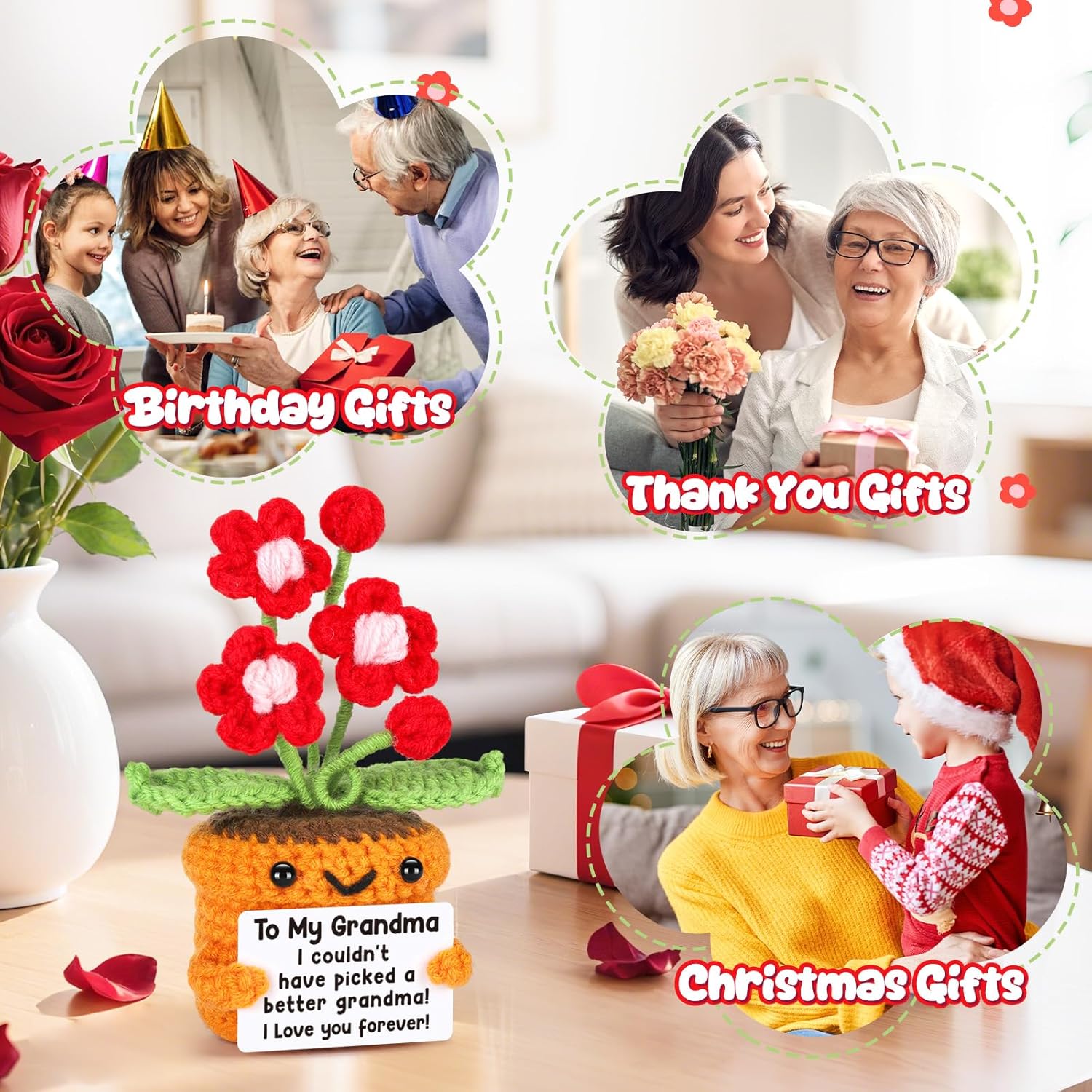 Searching for a gift that expresses the everlasting love between a grandchild and their grandmother? This handmade crochet flower is the perfect keepsake to remind her that she is cherished forever. Unlike fresh flowers that wither in a week, this charming crochet bloom is designed to last as long as your love for her.