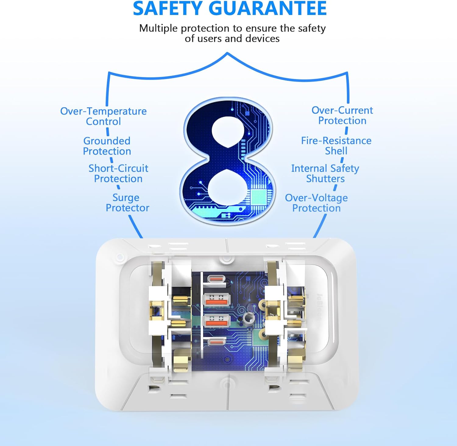 Smart Charging Technology: Equipped with intelligent IC technology, the USB ports automatically detect your devices to deliver optimal charging speeds up to 5V/2.4A each, ensuring your smartphones, tablets, and other gadgets power up quickly and safely.