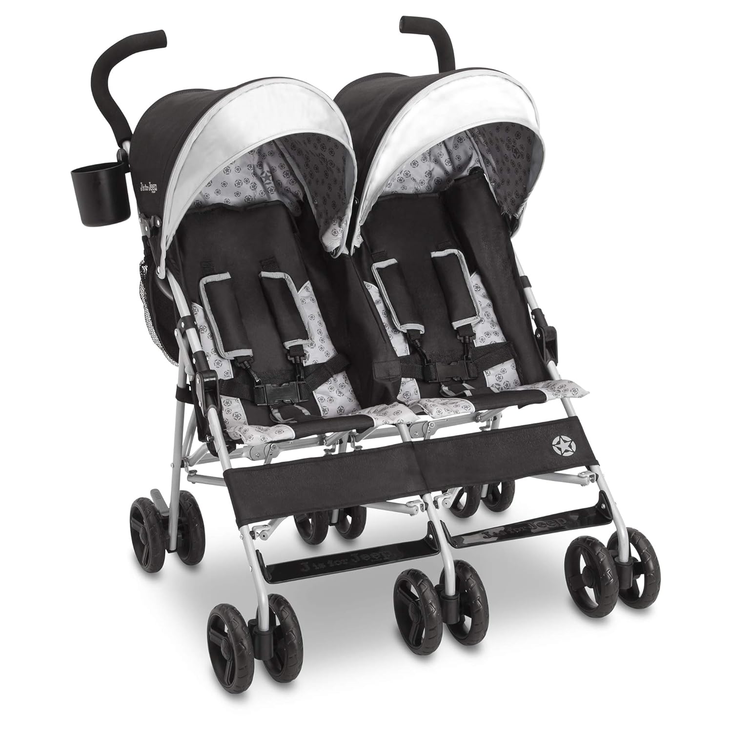 Designed for the active family, the Jeep Scout Double Stroller combines rugged durability with everyday convenience. Whether you are navigating city sidewalks or exploring off-road trails, this stroller is engineered to provide a smooth, comfortable ride for two children (up to 35 lbs. each).