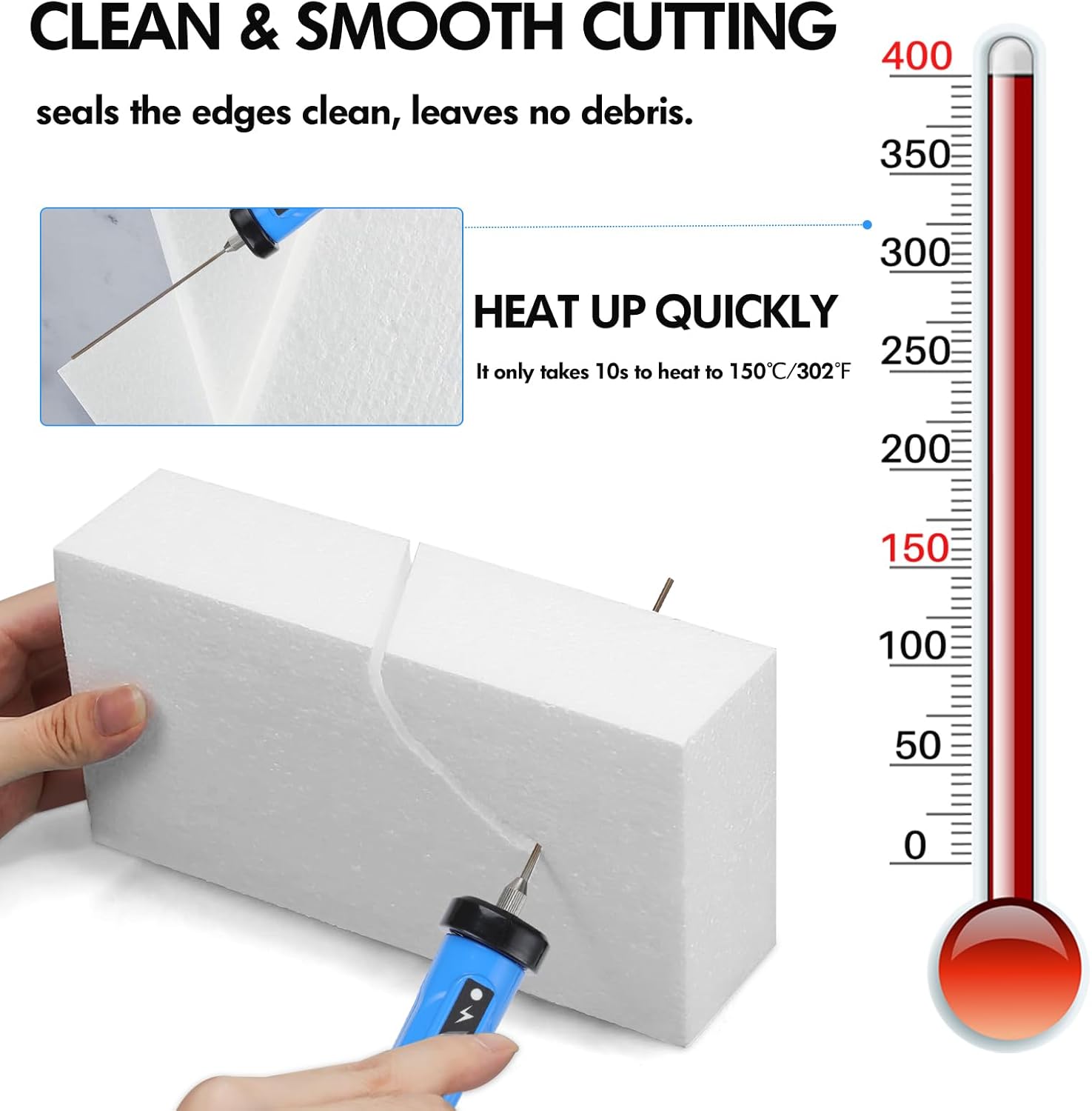 - INSTANT HEAT & CLEAN EDGES: Heats up in seconds to cut Styrofoam, EPP, and KT boards smoothly, leaving no messy residue behind.