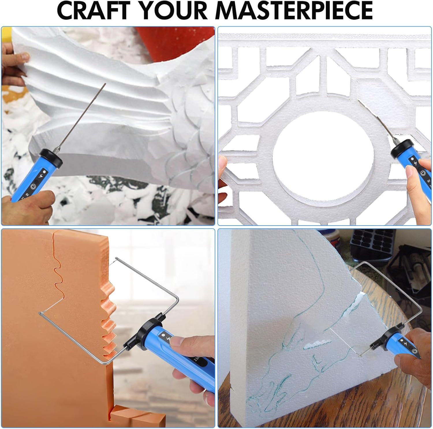 - PROFESSIONAL 4-IN-1 FOAM CUTTING SET: Includes 4 specialized blades, 5 replacement wires, and a secure holder for diverse cutting needs.