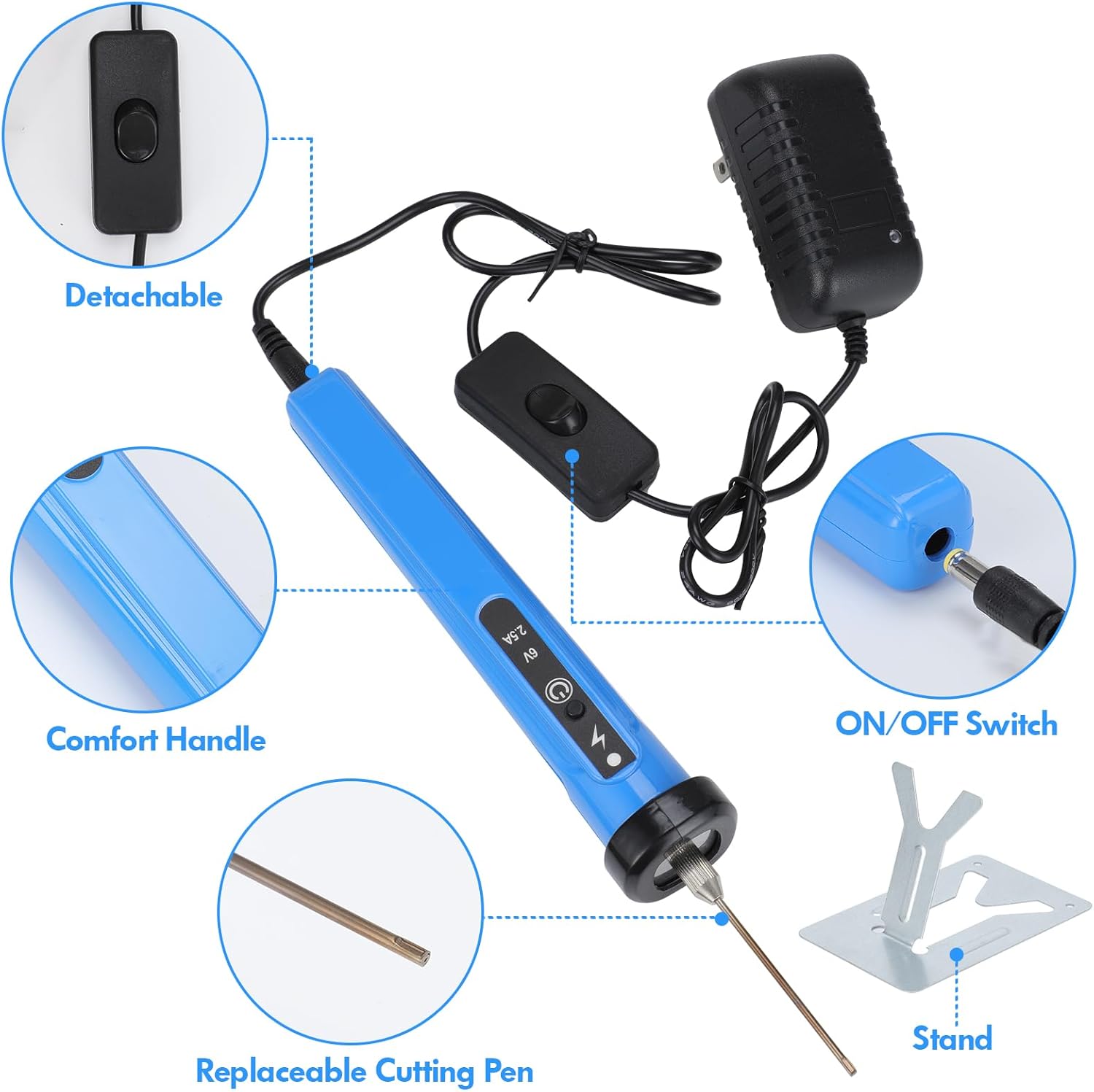 - Complete 4-in-1 Kit: Comes equipped with 4 distinct hot wire foam cutter blades, 5 replacement heating wires, and a sturdy cutter pen holder to tackle any shape or angle.