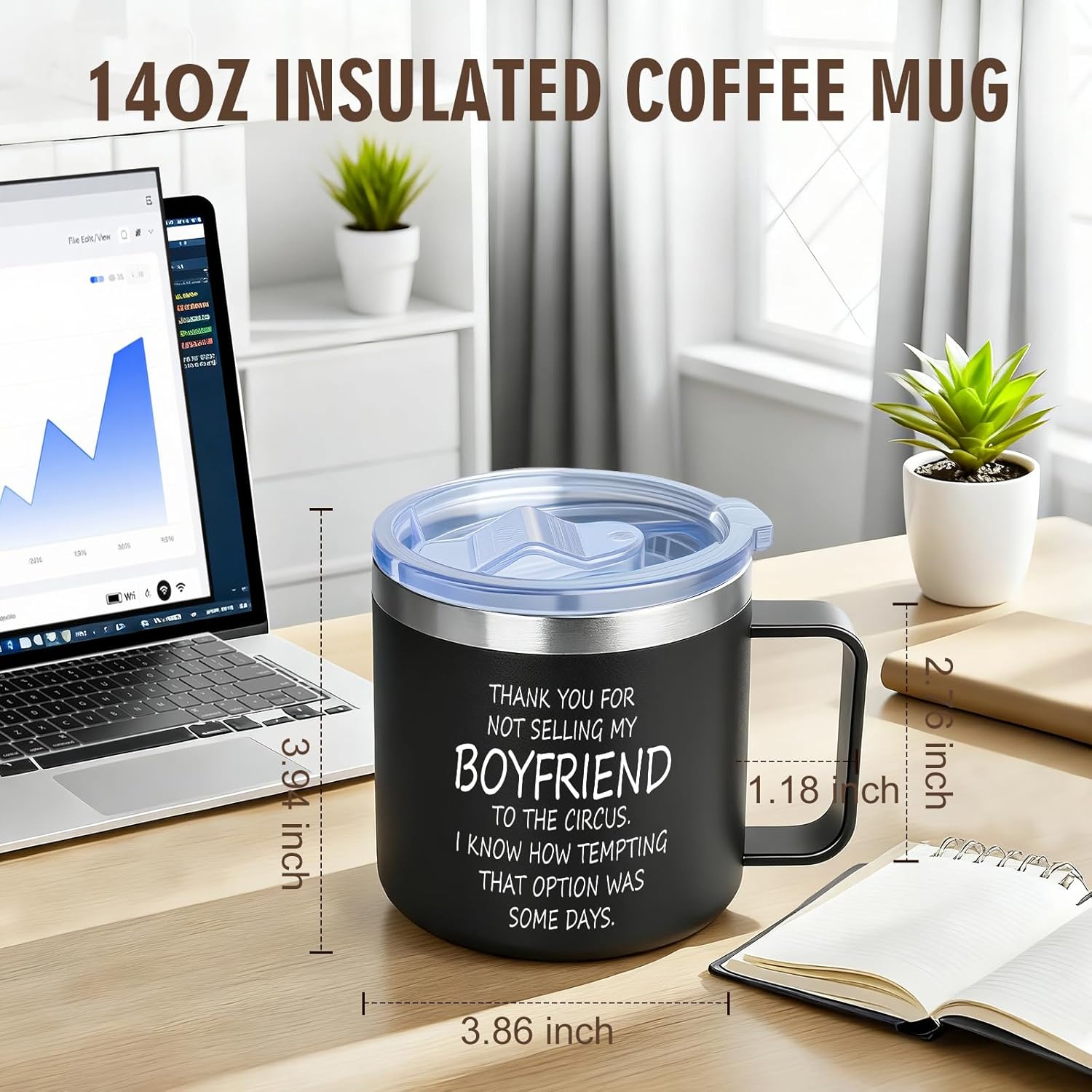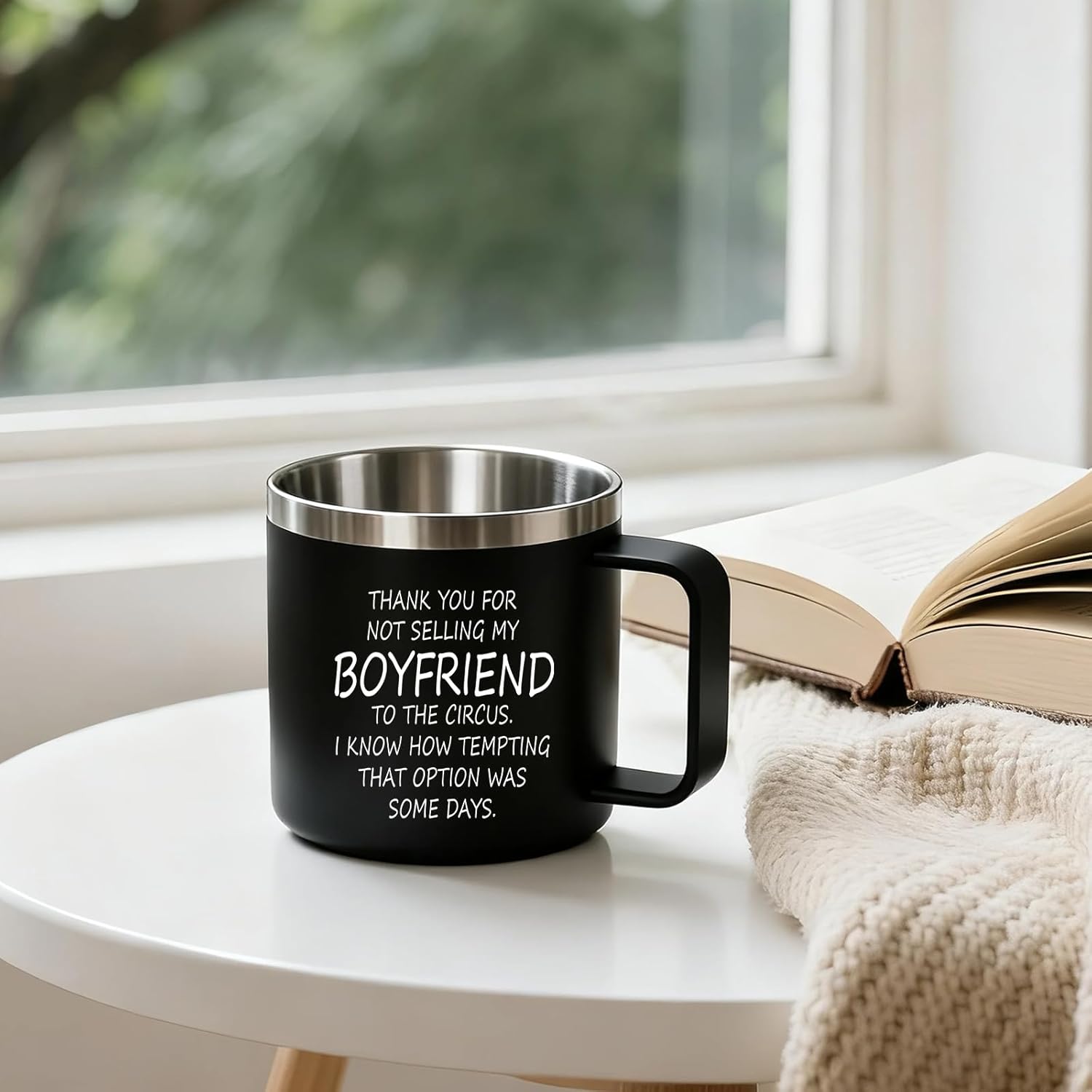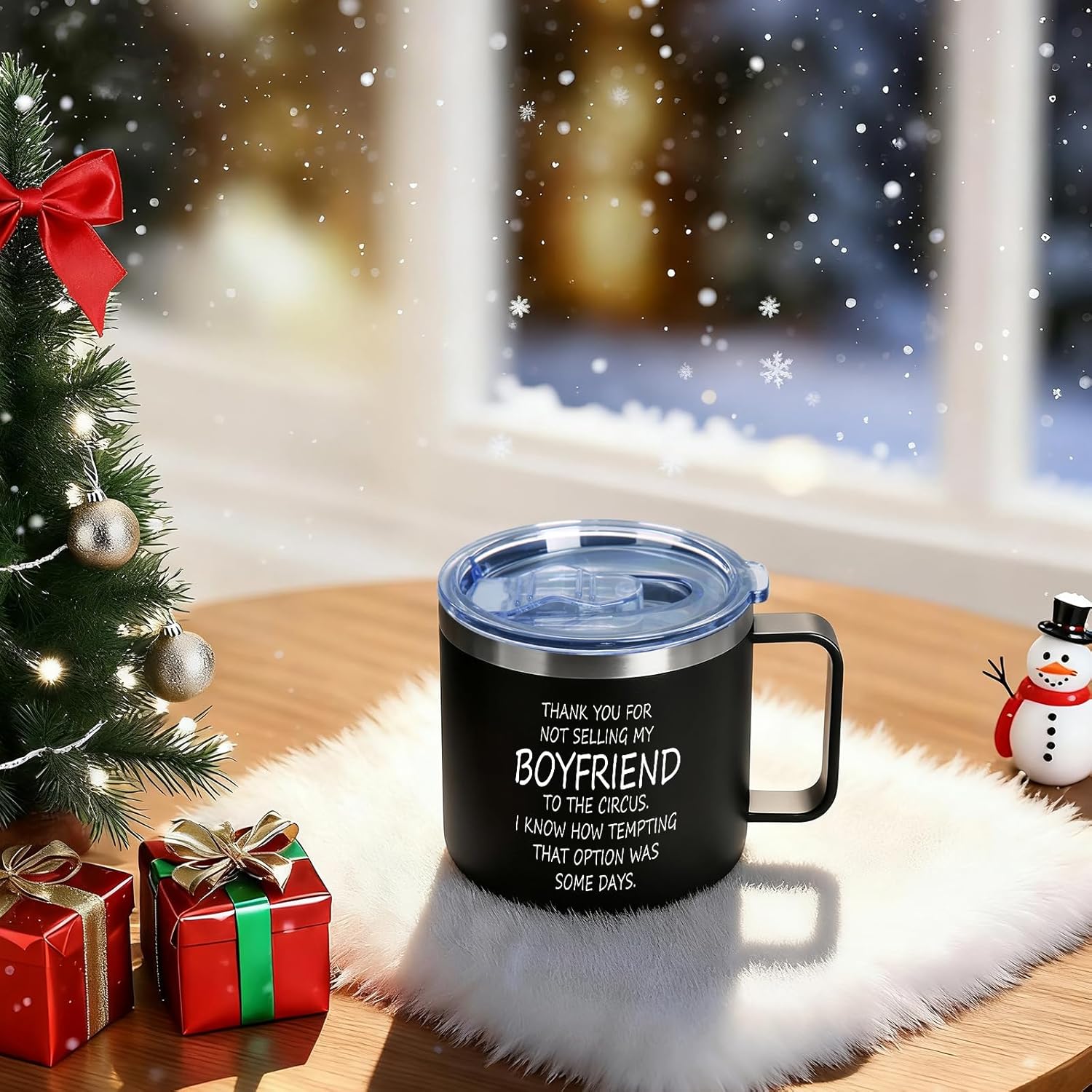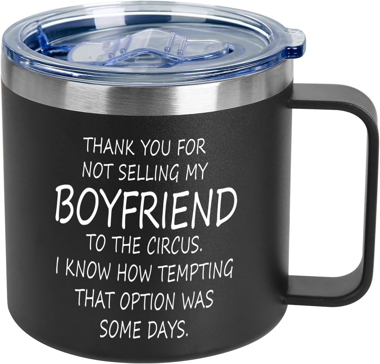 Looking for a unique way to break the ice with your boyfriend’s parents? This Jogskeor Insulated Coffee Mug is the perfect conversation starter and a hilarious gift for the man who raised your partner. Featuring the witty slogan ‘Thank You For Not Selling My Boyfriend To The Circus,’ this tumbler is sure to bring a smile to your future father-in-law’s face, whether he’s opening it on Christmas morning or his birthday.