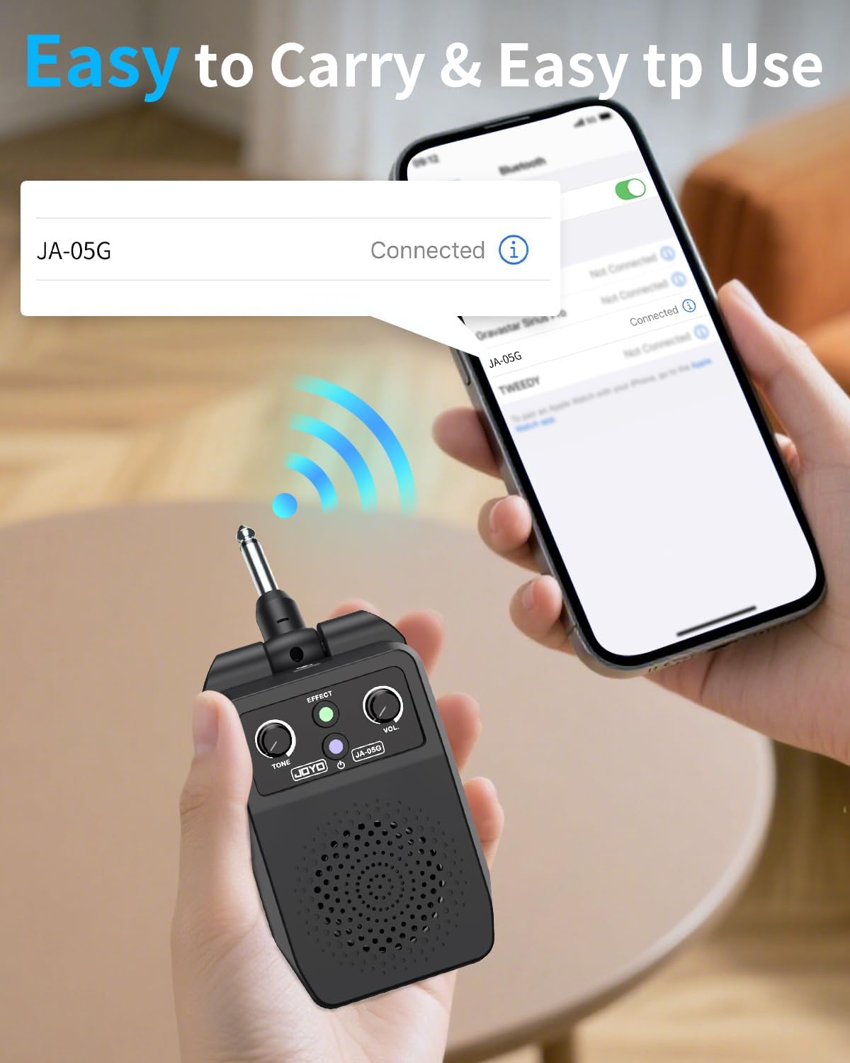 Experience the freedom of practicing anywhere with the JOYO JA-05G Mini Guitar Amplifier. Designed as the ultimate companion for electric guitar players, this compact 5-watt amp punches well above its weight. It easily clips directly onto your instrument, eliminating the need for cumbersome cables and allowing you to play whether you are in your dorm room, on a tour bus, or relaxing in the backyard.