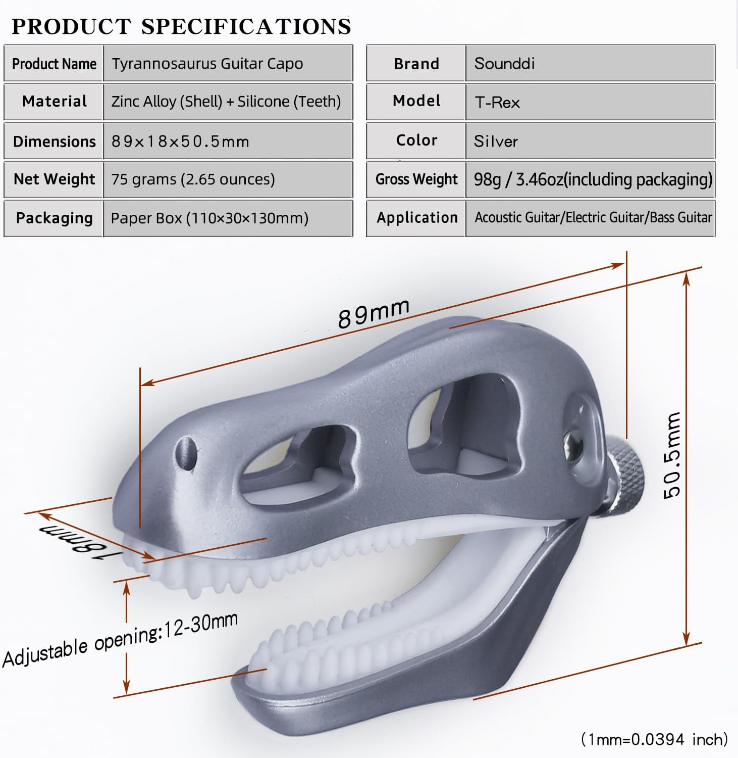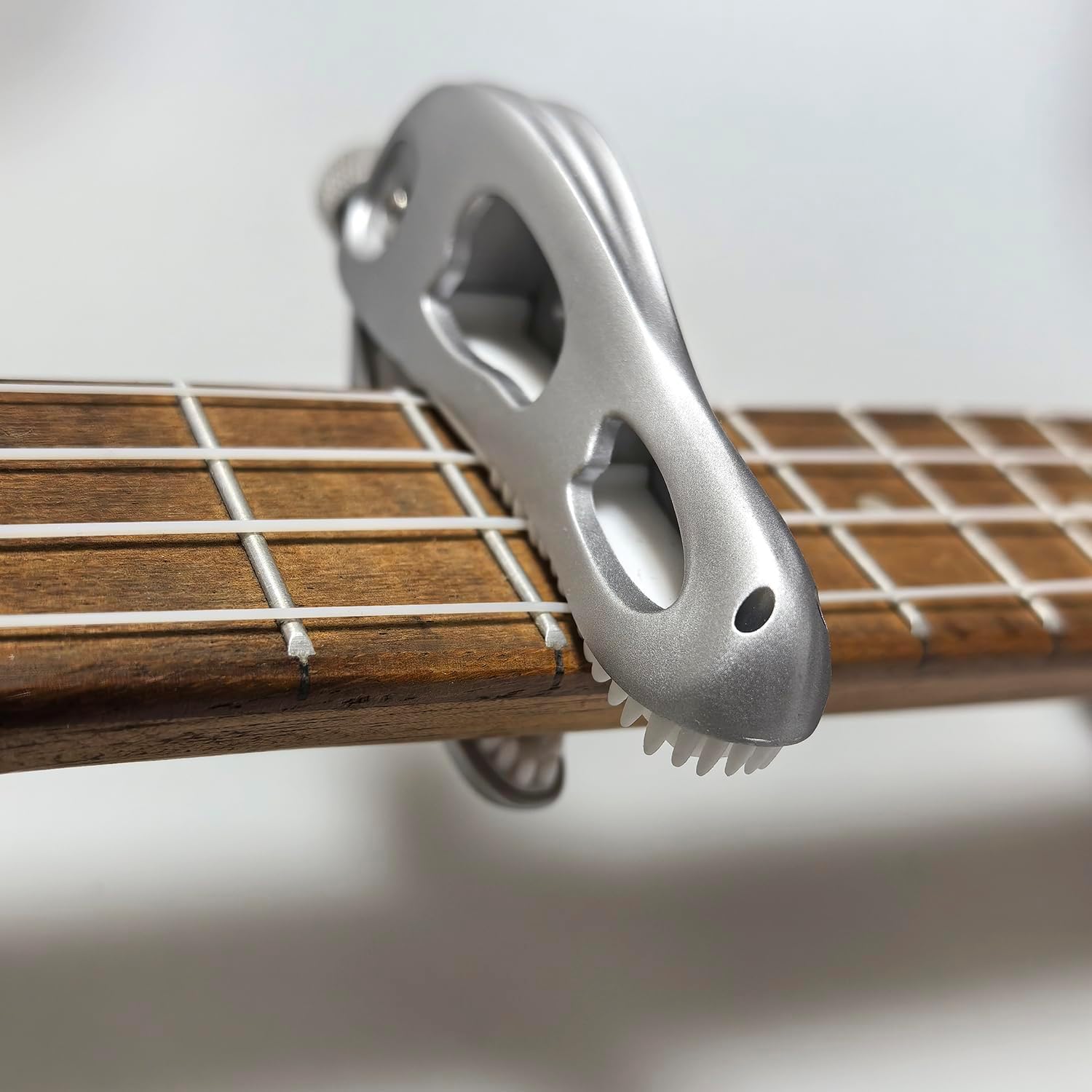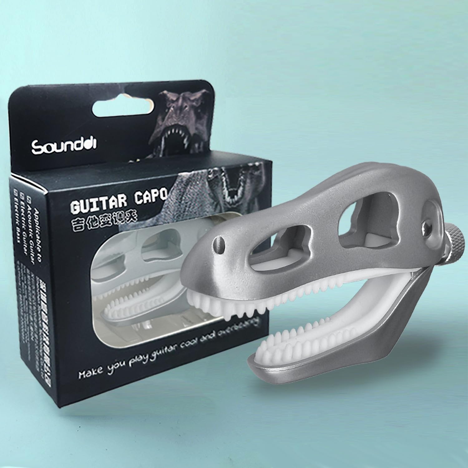UNLEASH YOUR INNER ROCKER WITH THE T-REX CAPO: Elevate your musical performance with a capo that doubles as a work of art. This premium capo features a hyper-realistic Tyrannosaurus Rex skull design, merging the prehistoric power of the Jurassic era with modern functional gig gear. It’s not just an accessory; it’s a statement piece that looks fierce on the headstock of any guitar or bass.