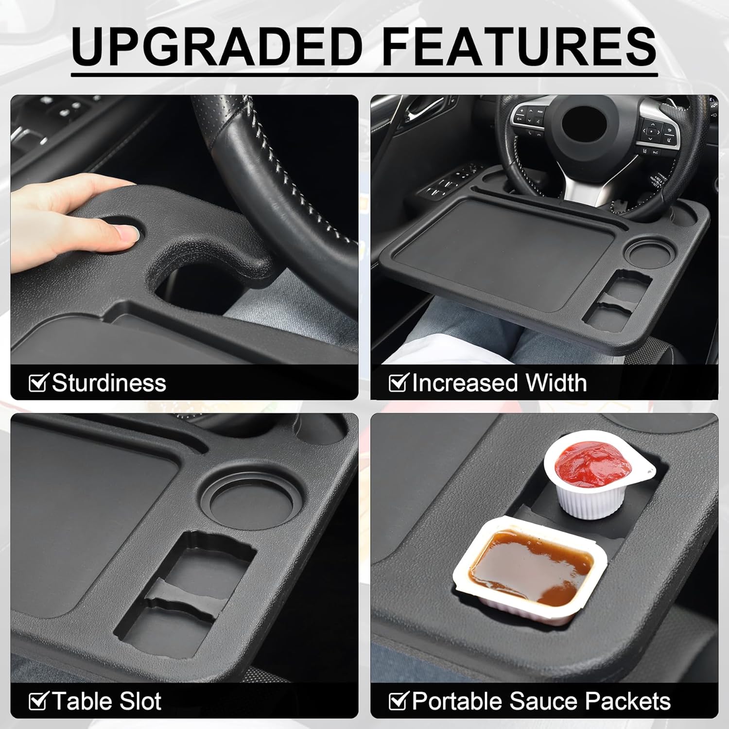 Featuring an ultra-wide design, this tray accommodates larger laptops and full meals with ease. The integrated 4-in-1 functionality includes dedicated slots for your tablet or phone, dual sauce racks for enjoying meals on the go, and deep cup holders to prevent spills.