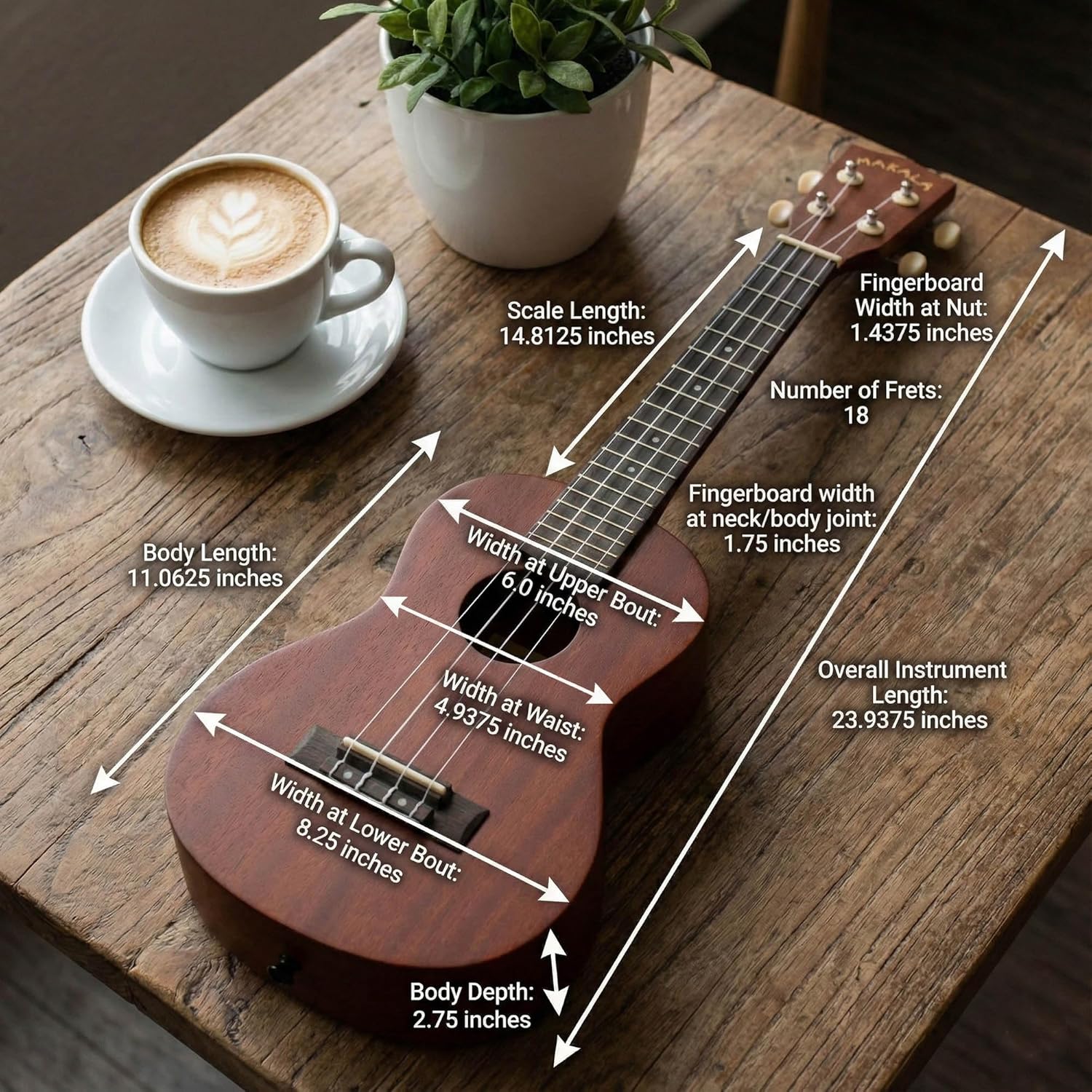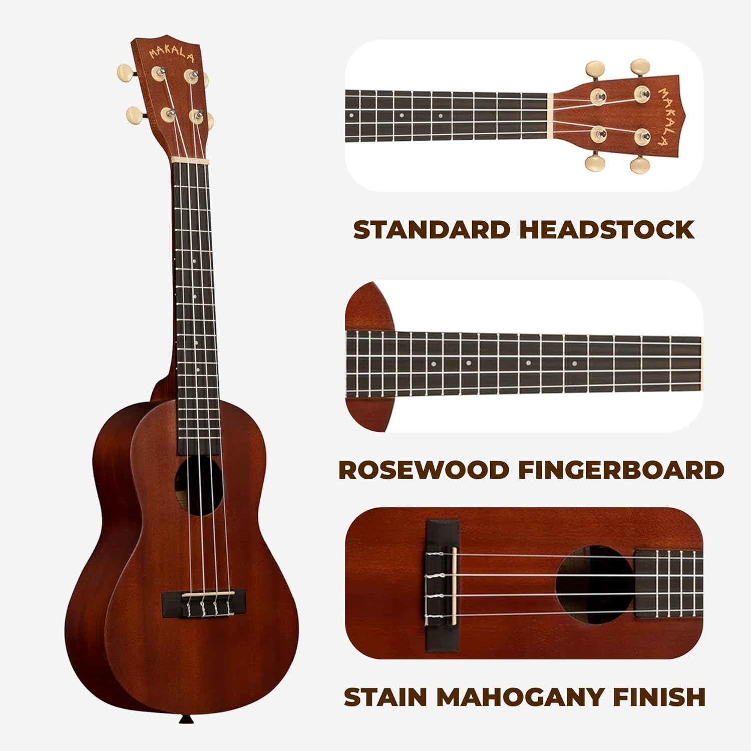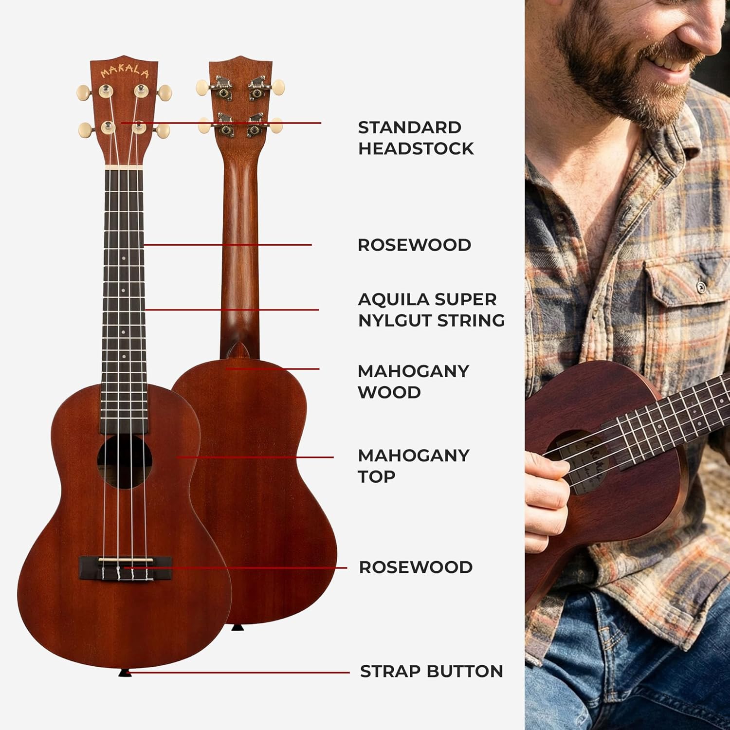 • Concert Size: Larger than a soprano, offering a fuller sound and more space for complex chords.