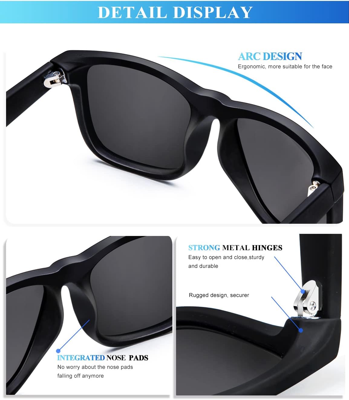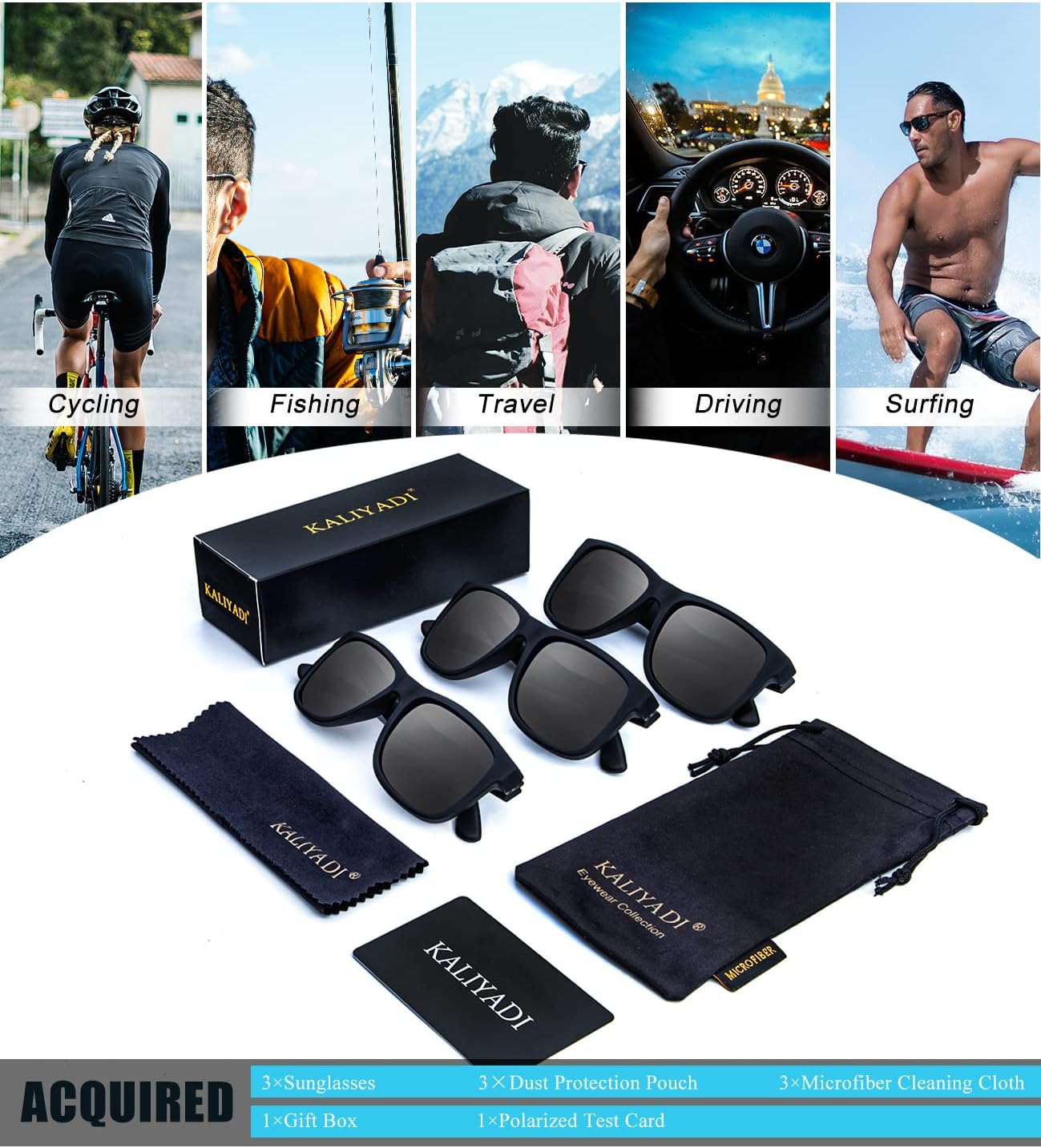 Elevate your style and protect your eyes with the KALIYADI Polarized Sunglasses 3-Pack. Designed for both men and women, these sunglasses combine a timeless classic aesthetic with high-performance eyewear technology. The lightweight matte black frames offer a modern, versatile look that complements any face shape, while the polarized lenses eliminate glare and reduce eye strain, providing superior visual clarity during driving, fishing, or outdoor sports.
