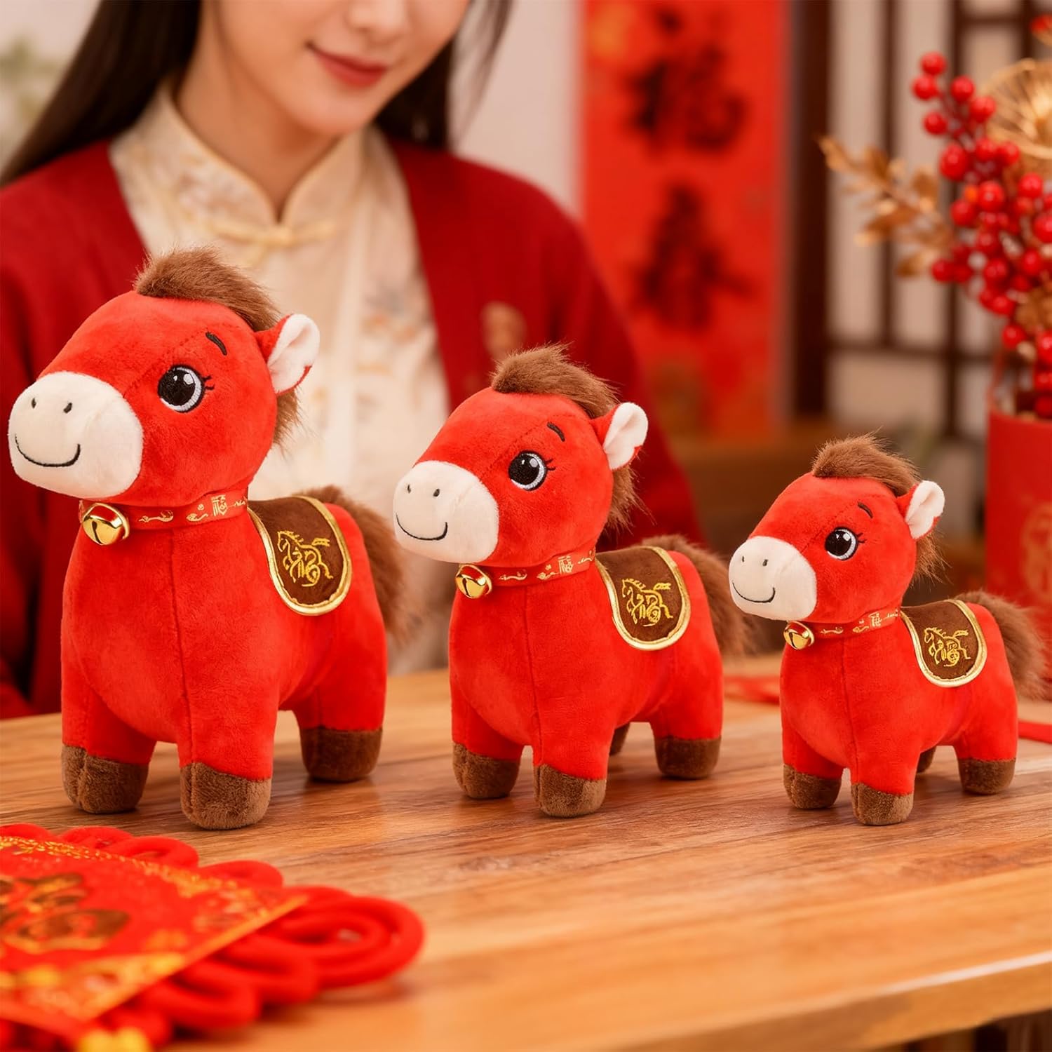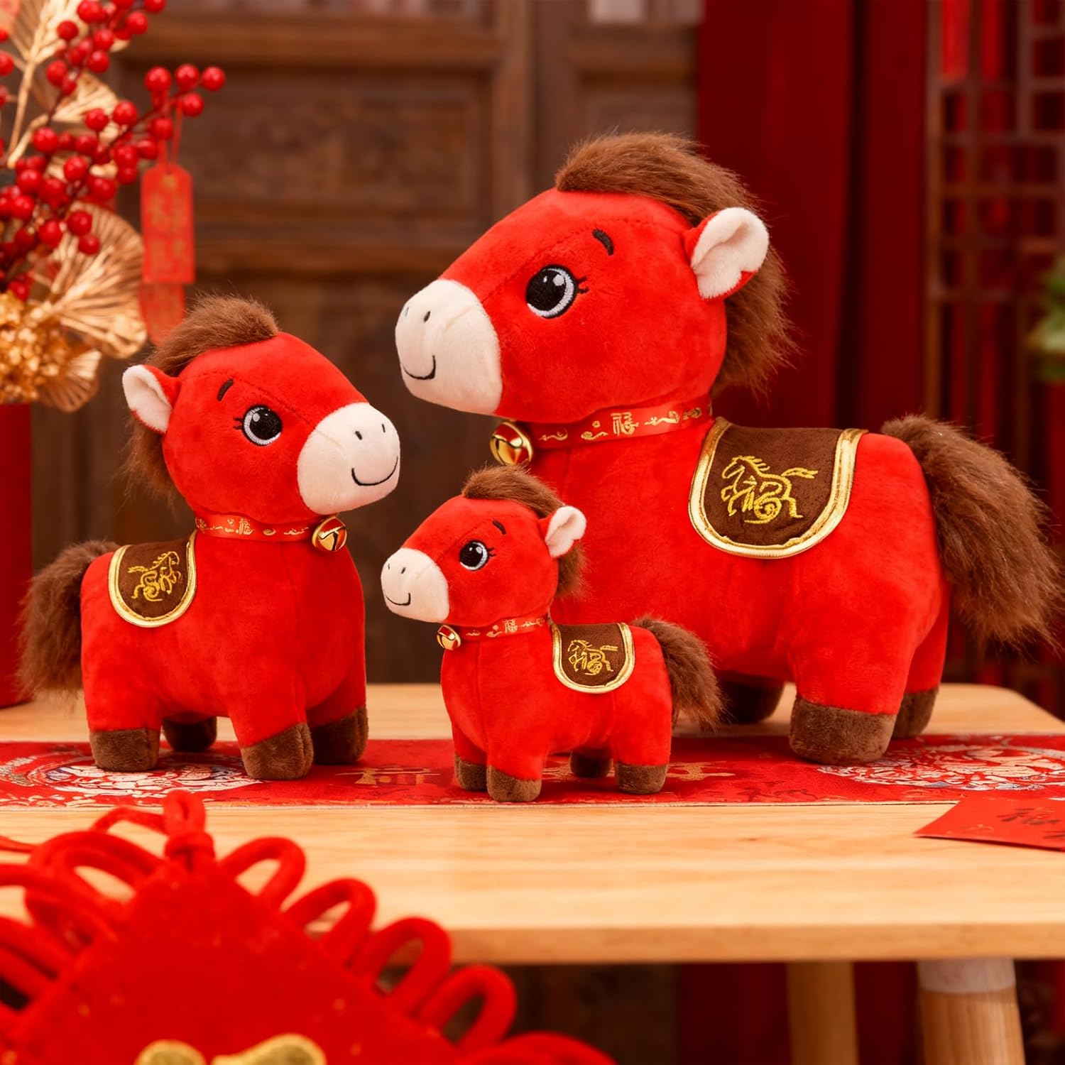 Designed for versatility, this charming Horse figure adds a touch of cultural elegance to any setting. Place it on your tabletop, desk, or car dashboard to invite positive energy and joy. Its high-quality construction ensures it remains a lasting souvenir for years to come, making it an ideal blessing token for family, friends, or colleagues. Celebrate tradition with style and let the KESOCORAY Horse Plush gallop into your heart and home this festive season.