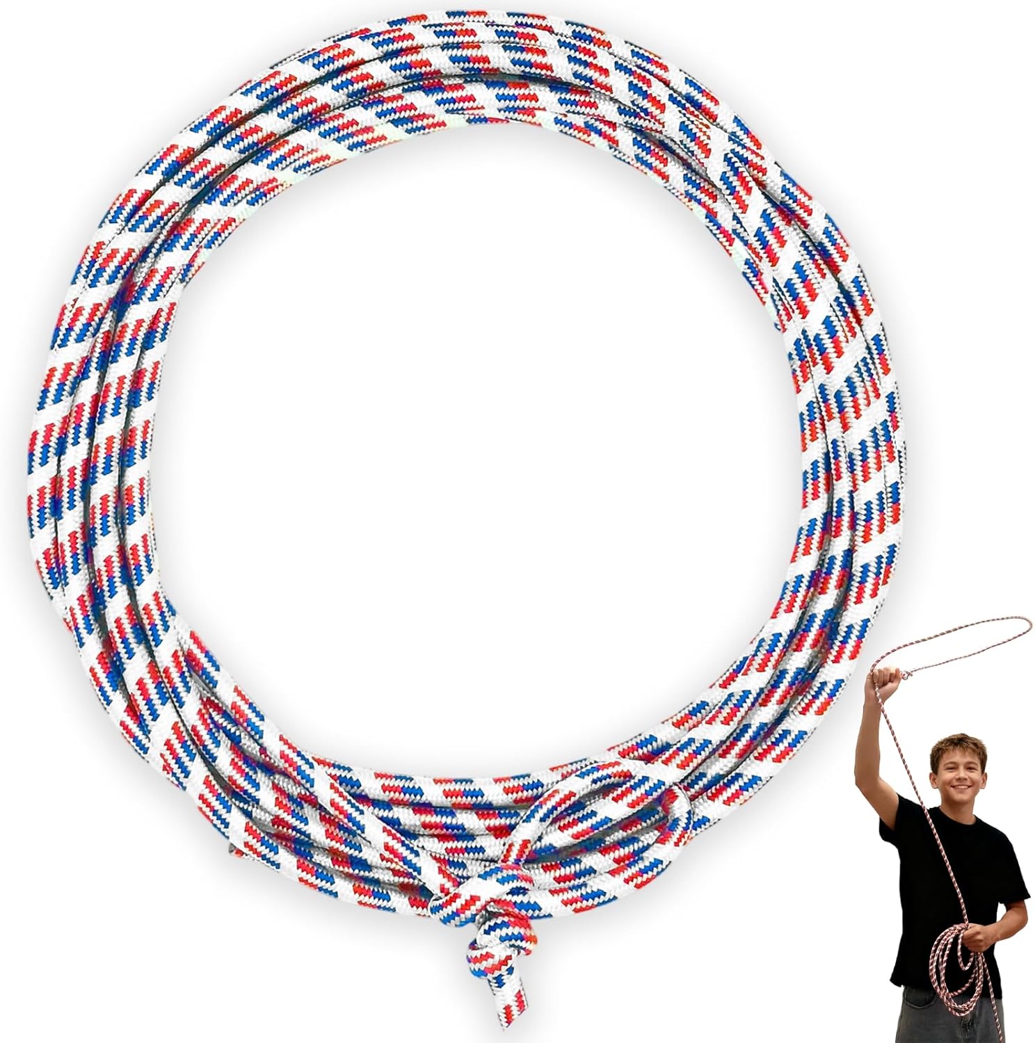 Kids Cowboy Lasso Rope – 20ft Pre-Tied Loop Lariat Roping Toy for Kids, Western Play & Costume Prop (Red/Blue)