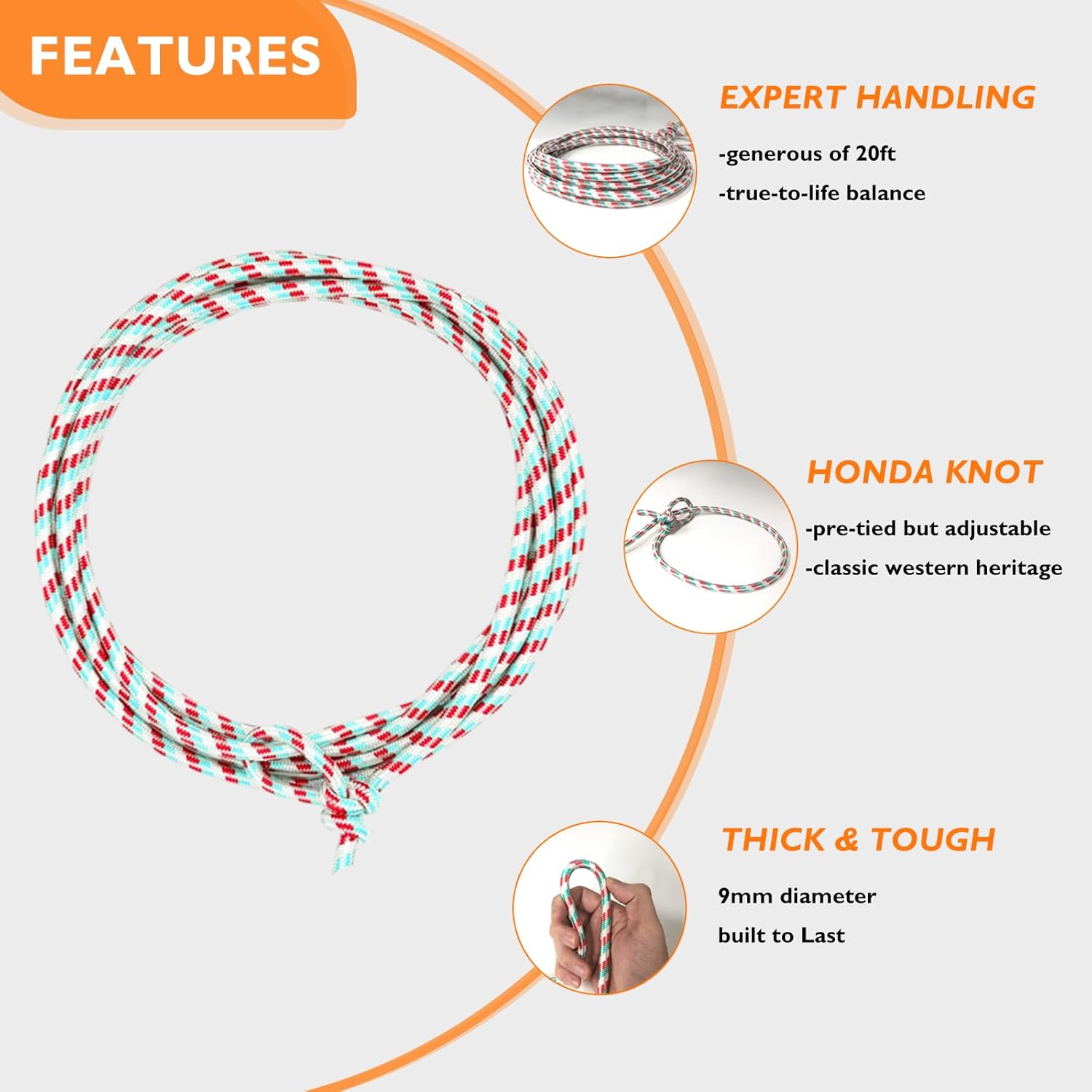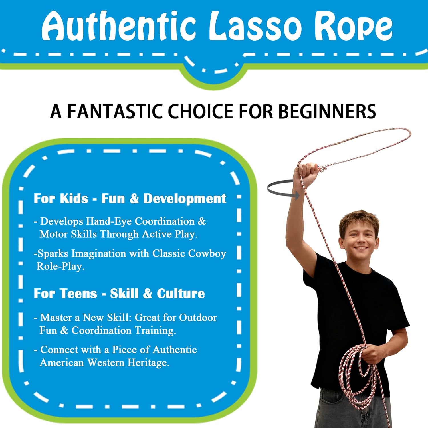 Pre-tied loop for instant lasso fun | 20ft x 9mm durable polypropylene rope | Perfect for kids’ small hands | Builds coordination & focus | Great costume prop for cowboys & cowgirls