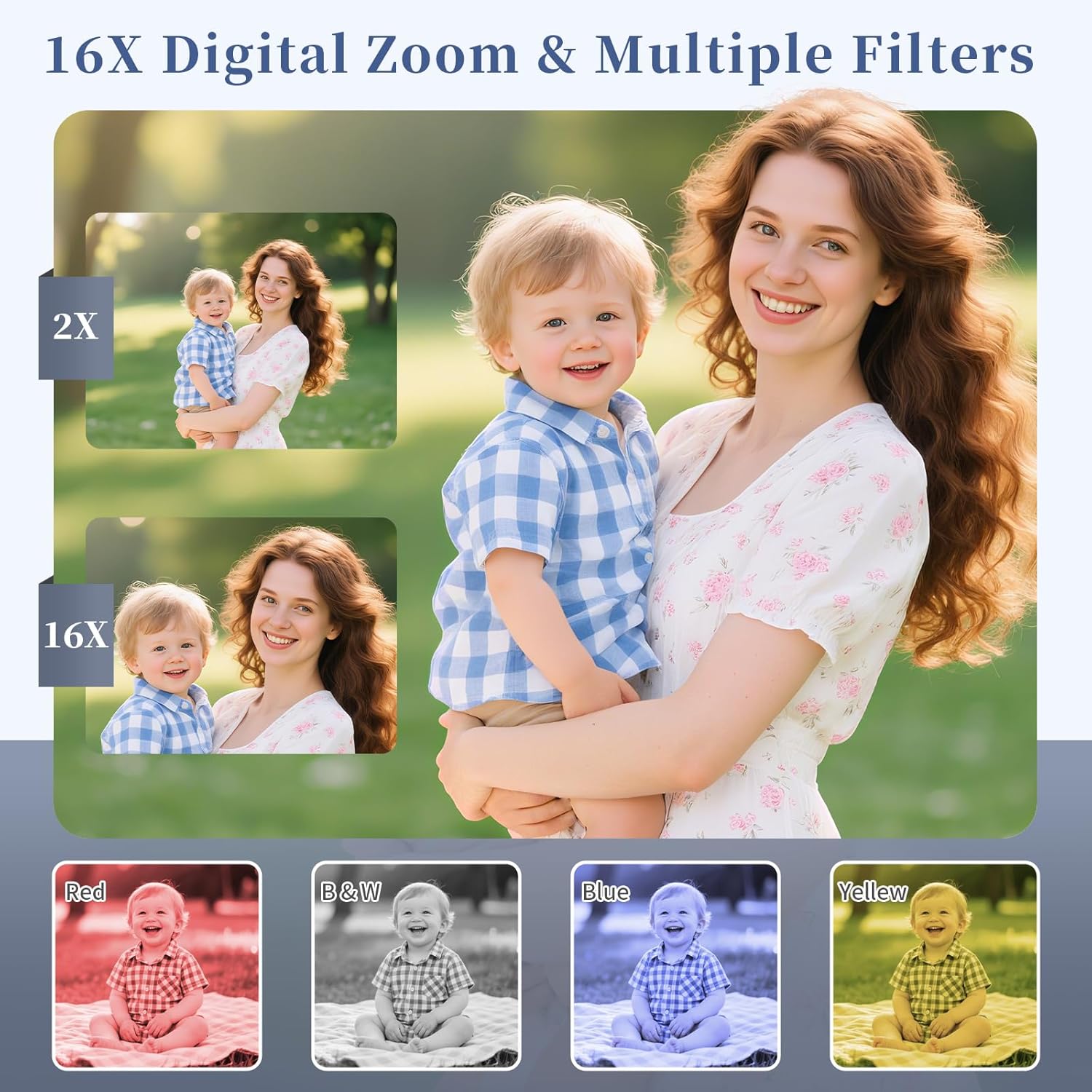 - ENDLESS CREATIVE FUN: Includes 30 built-in filters (retro, B&W, etc.), 16X zoom, anti-shake technology, and face detection to help kids create unique, artistic photos and videos effortlessly.