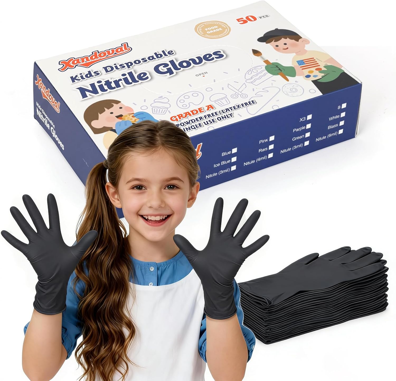 EMPOWER LITTLE HELPERS: Keep your child’s hands clean and protected during messy arts and crafts, gardening, or kitchen chores with our Kids Disposable Nitrile Gloves. Scaled specifically to fit children ages 4-8 years old, these gloves are the perfect barrier against dirt, germs, and sticky messes.
