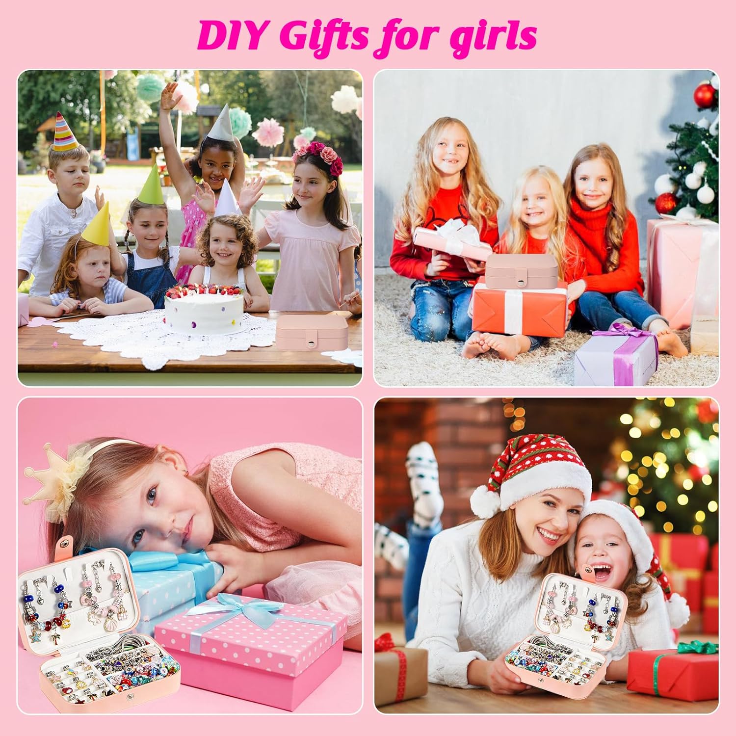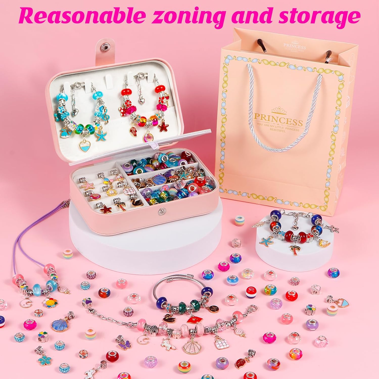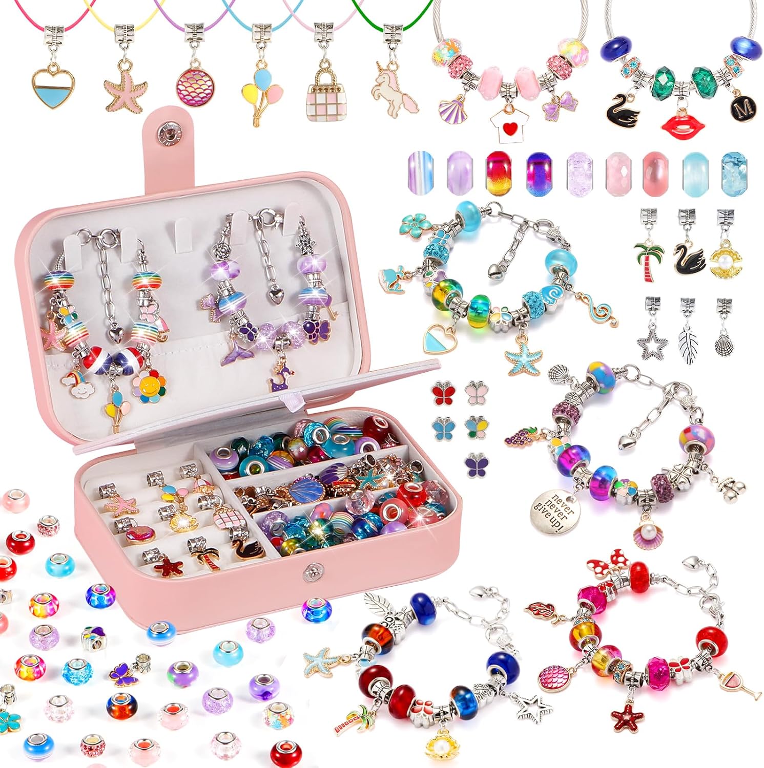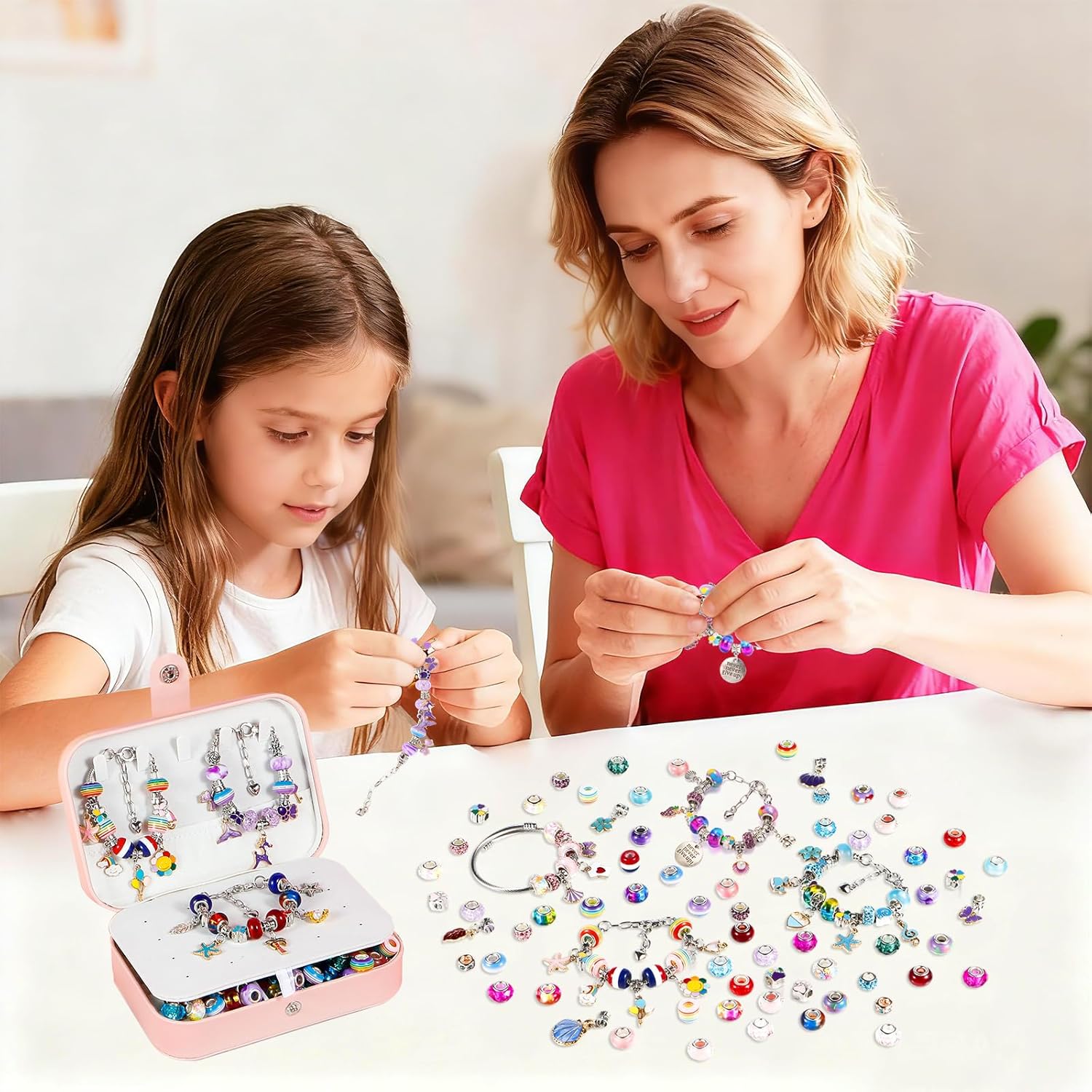 KXQ 132-Piece Charm Bracelet Making Kit for Girls – DIY Jewelry Craft Set with Gift Box, Beads, Charms & Storage Case – Creative Art Activity for Kids Ages 5-12