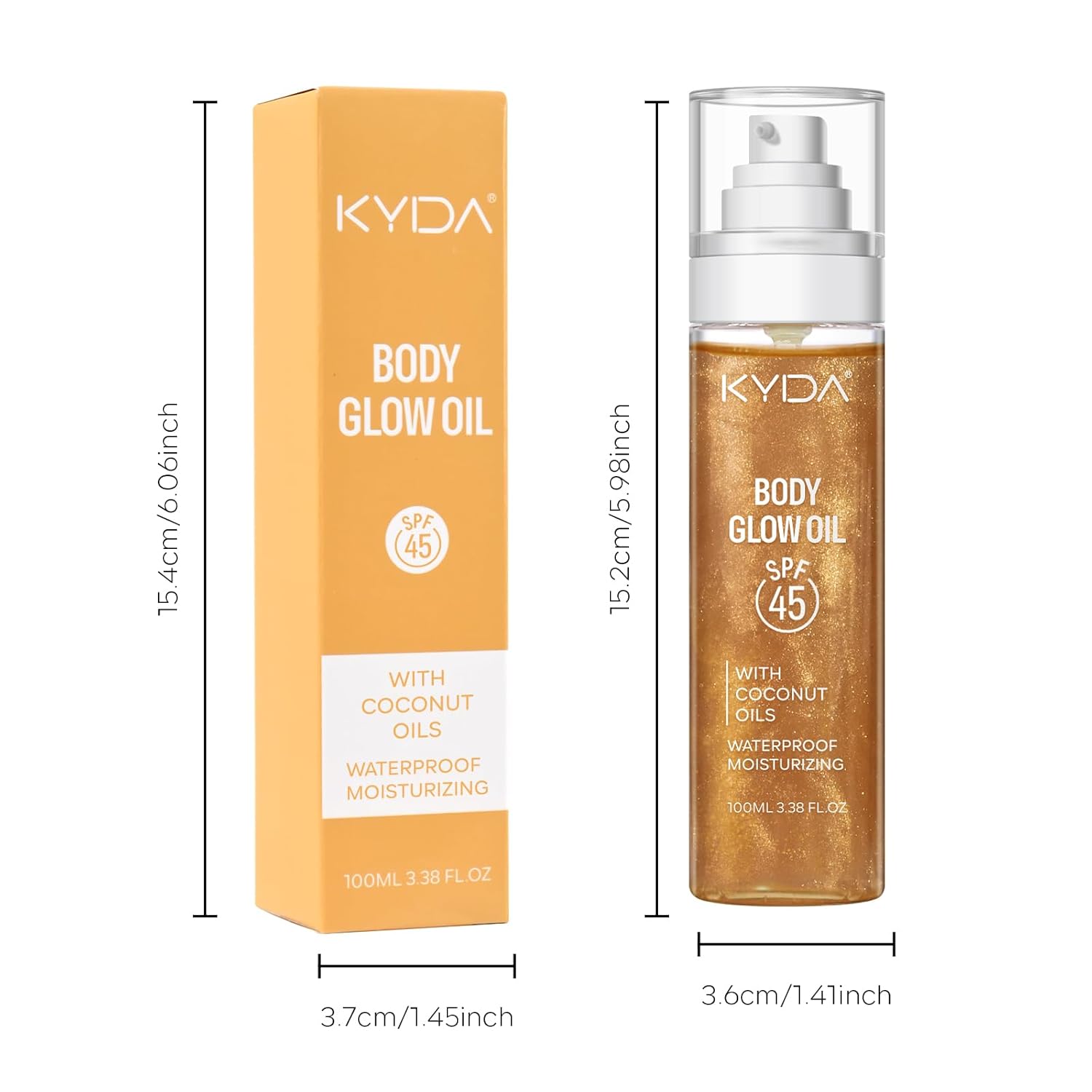 Achieve the ultimate sun-kissed radiance while keeping your skin protected with the KYDA Body Glow Oil. This lightweight, non-greasy formula acts as a powerful shield against UV rays while imparting a stunning, shimmering gold finish. Perfect for beach days, summer vacations, or daily wear, this oil nourishes your skin with coconut oil and natural botanical extracts, ensuring you look luminous without compromising on sun safety.
