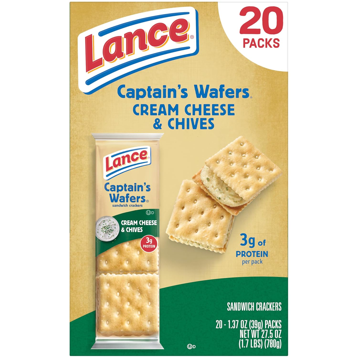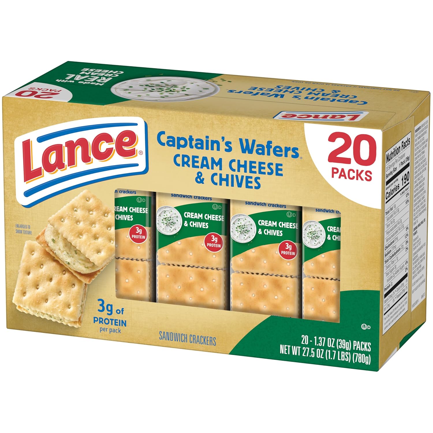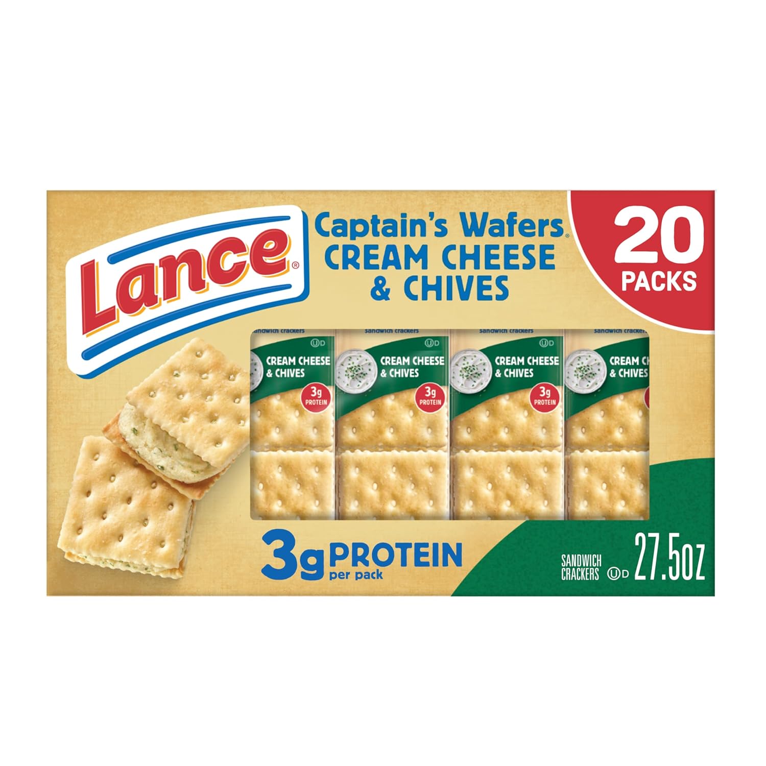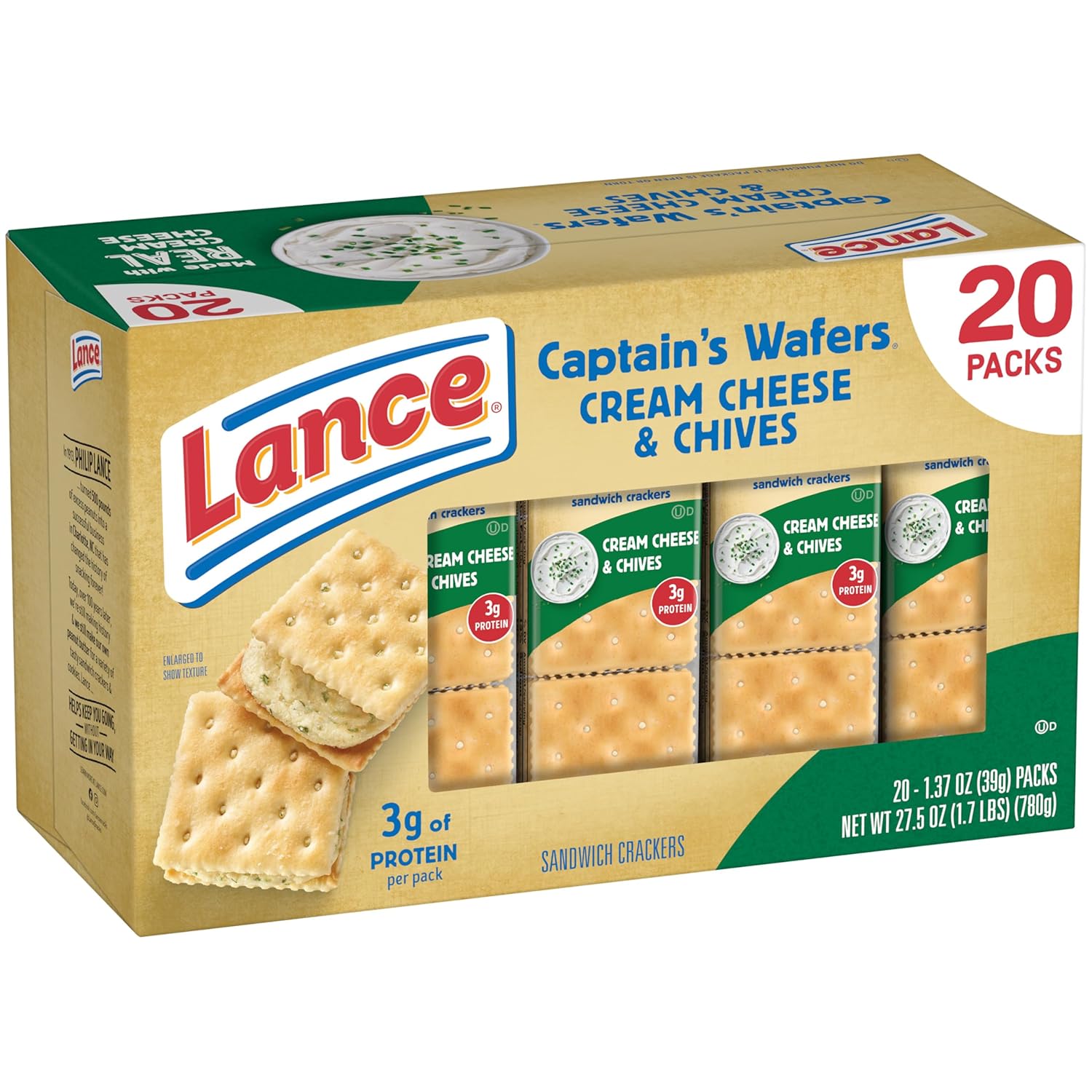 Elevate your snacking experience with the rich, savory taste of Lance Captain’s Wafers Cream Cheese and Chives Sandwich Crackers. For over 100 years, Lance has defined the standard for sandwich crackers, combining two crispy, oven-baked wafers with a creamy, flavorful filling made with real cream cheese and the perfect hint of chive. These aren’t just snacks; they are a satisfying indulgence designed to curb hunger whenever it strikes.