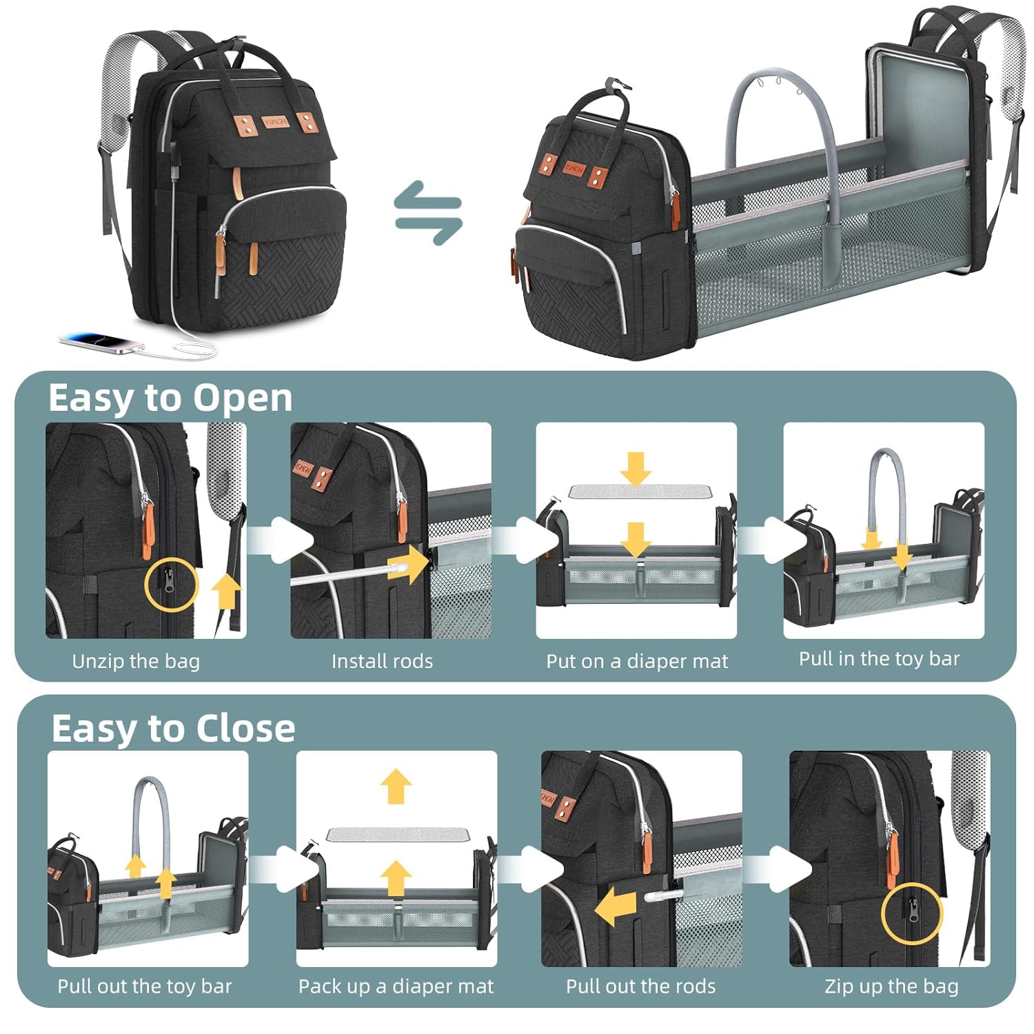 Travel-Ready & Tech-Friendly: Stay connected and charged on the go with the built-in USB charging port (power bank not included). The stroller straps allow you to hang it effortlessly from your pram, relieving shoulder pressure during long walks.