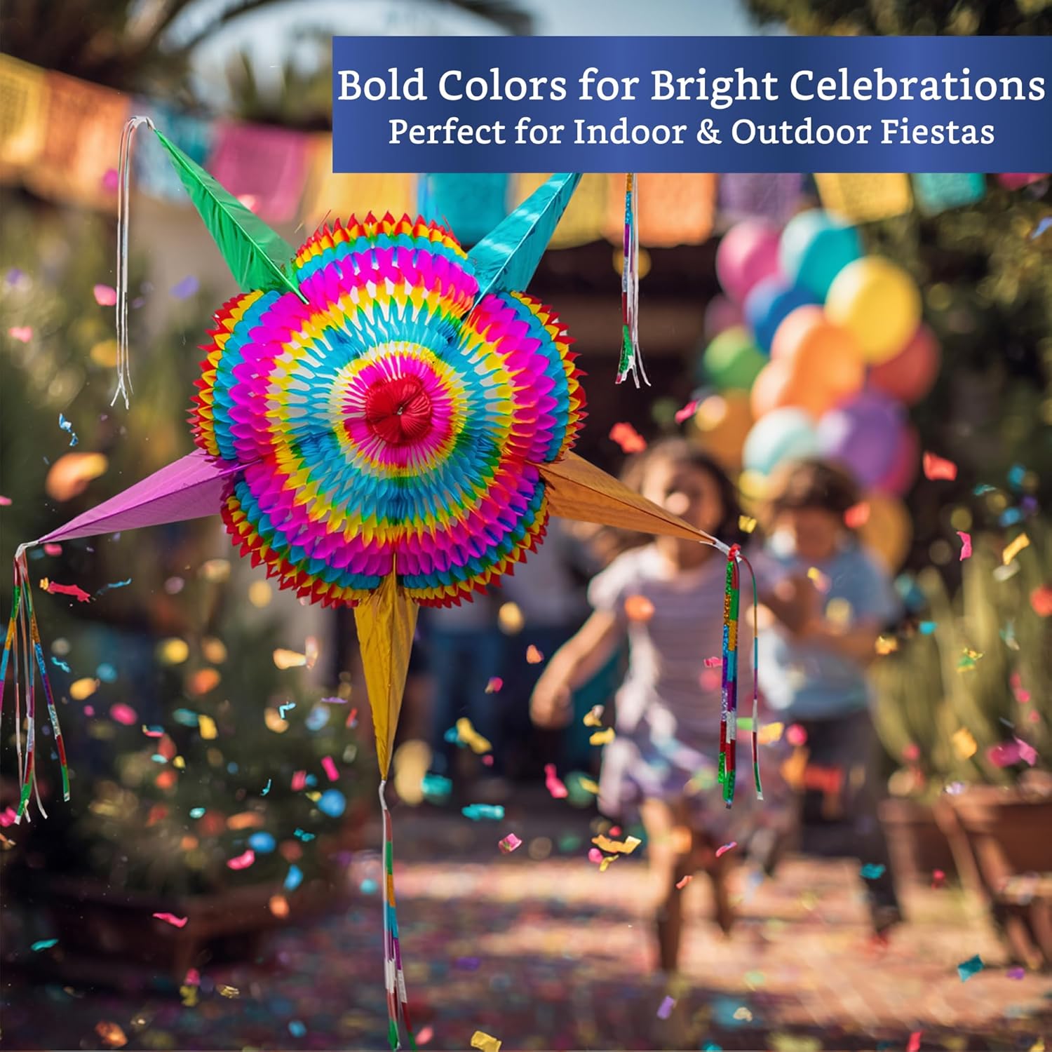 • AUTHENTIC MEXICAN CRAFTSMANSHIP: Handmade in Central Mexico, this 32-inch traditional star piñata features artisan-crafted tissue paper fringe and foil streamers for genuine fiesta style.