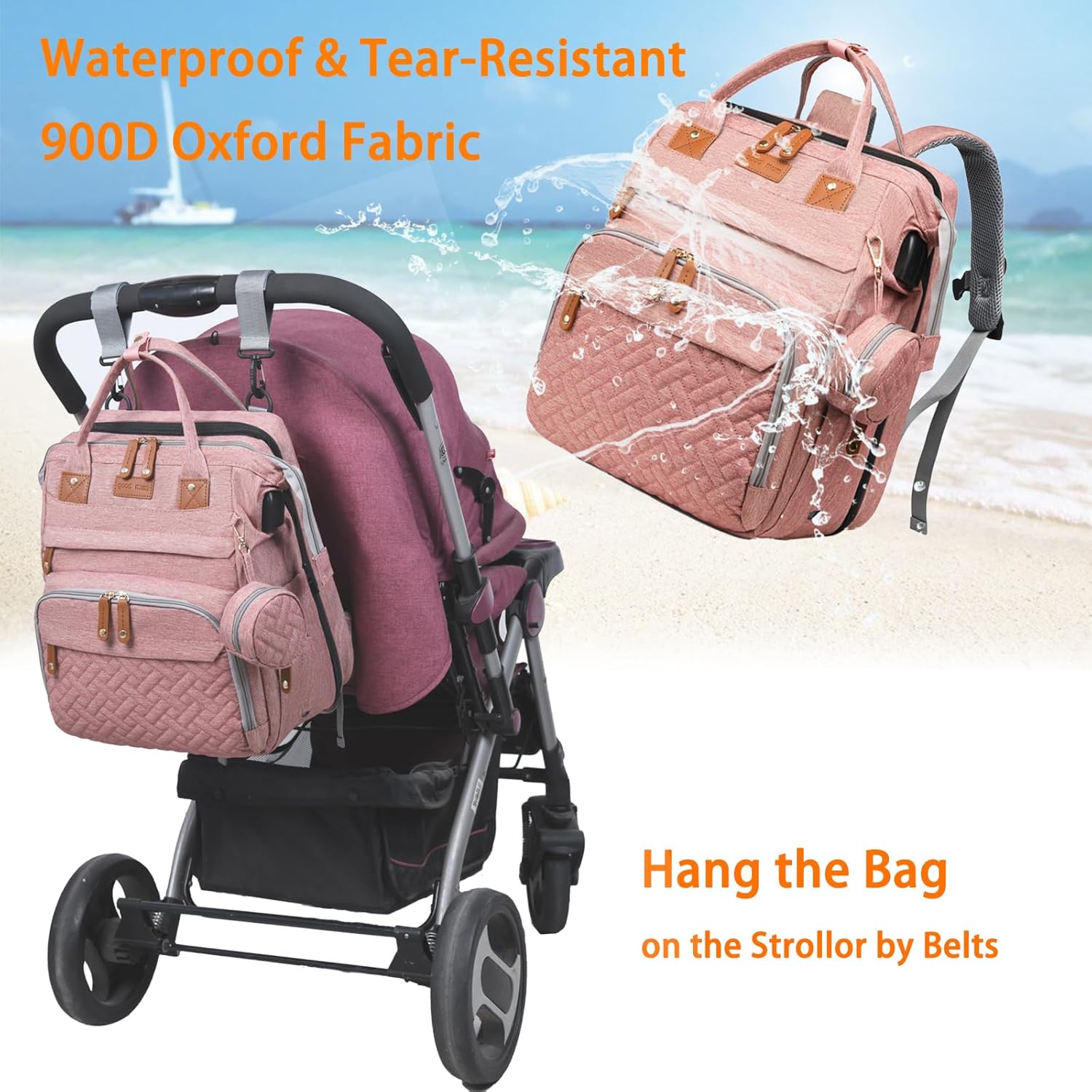 - 19 Smart Pockets: Dedicated compartments for diapers, wet wipes, bottles, clothes, and personal items like phones and keys. The front insulated pocket features aluminum foil lining to keep milk warm or snacks cool.