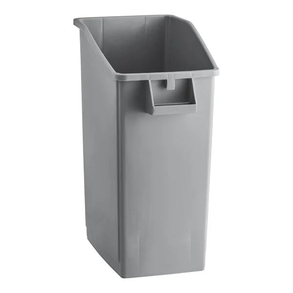 Streamline your commercial workspace with this premium 23-gallon under-counter trash can from Lavex. Designed for demanding environments, this rectangular waste receptacle is crafted from industrial-grade polypropylene that resists odors, stains, and daily wear. The thoughtfully angled opening provides effortless access for quick disposal, while the ergonomic handle delivers a secure grip for easy transportation between locations. Built-in cinches keep your trash bags snugly in place, preventing slippage and making bag changes quick and mess-free. Measuring 21 3/4 inches L x 14 9/16 inches W x 29 15/16 inches H, this unit fits perfectly beneath standard commercial height worktables and counters. The innovative stackable design optimizes your storage space and simplifies transportation during cleaning or reorganizing. Pair with a compatible dolly (sold separately) for enhanced mobility across your facility. The sleek gray exterior maintains a professional appearance in any setting and wipes clean with minimal effort. Perfect for restaurants, offices, healthcare facilities, warehouses, and retail environments – this high-capacity trash can handles heavy-volume waste management with ease.
