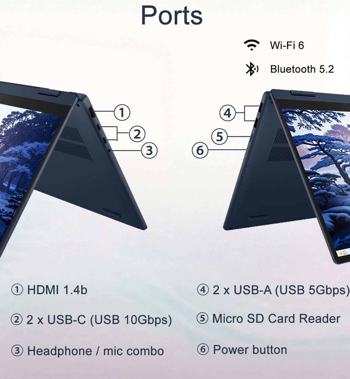 - 2-in-1 Design: 360° hinge lets you switch between Laptop, Tablet, Tent, and Stand modes effortlessly.