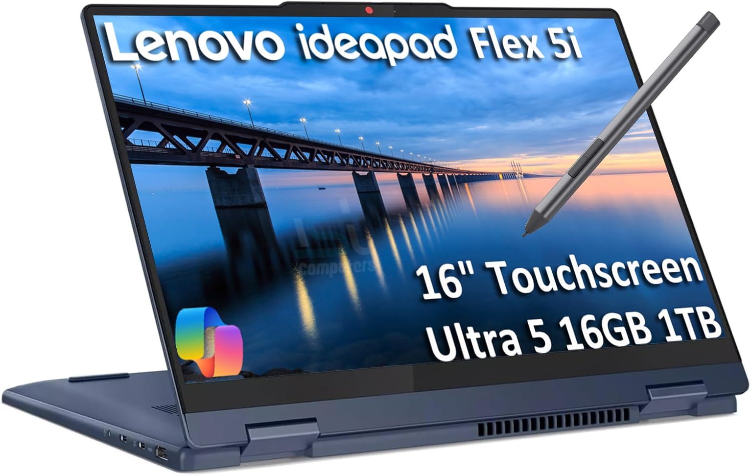 Lenovo IdeaPad Flex 5i 2-in-1 16 inch Touchscreen Laptop, Intel Core Ultra 5 225U AI Processor, 16GB RAM, 1TB SSD, Digital Pen, FHD+ Display, Backlit Keyboard, Windows 11 Home